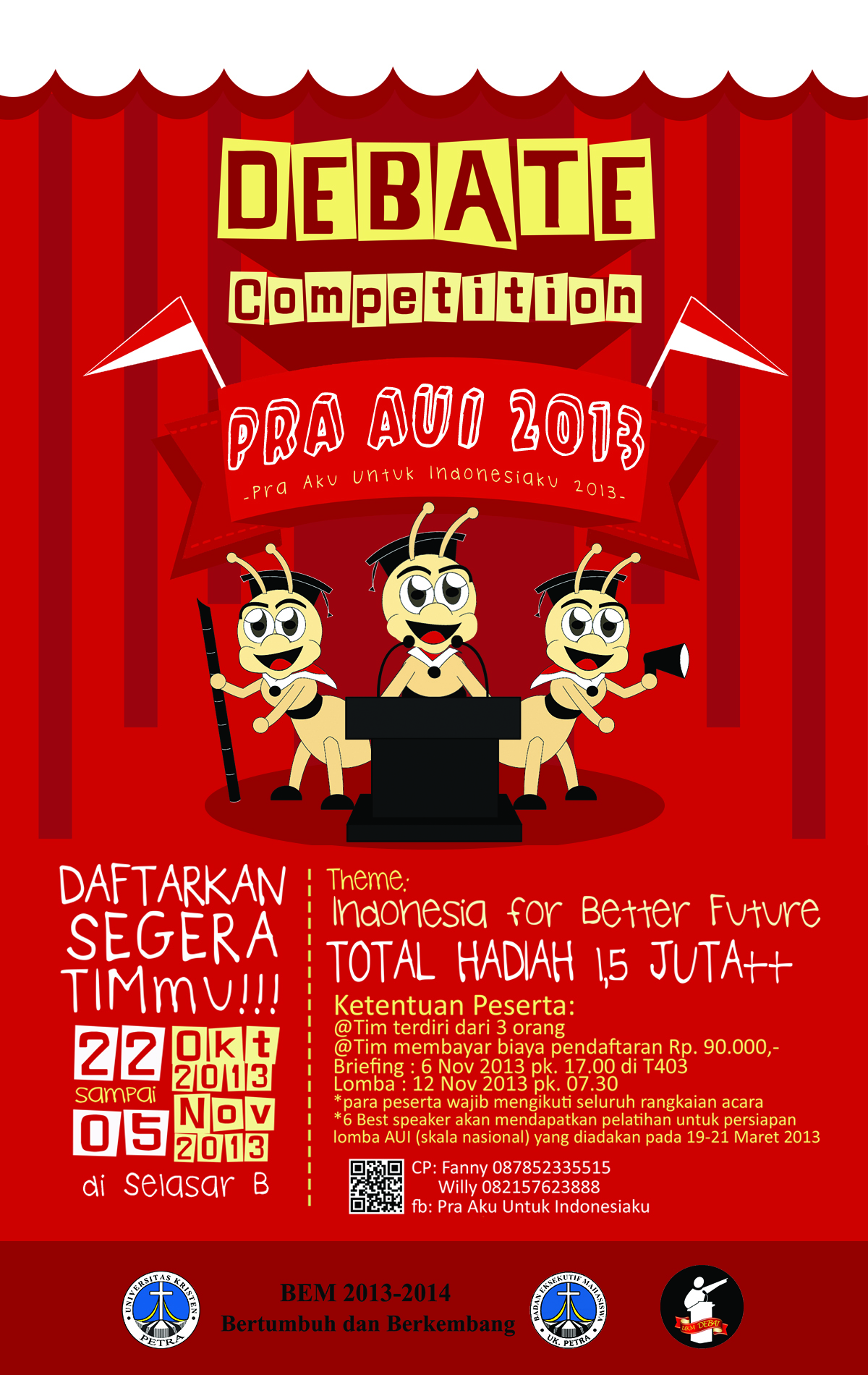 UKM English Debate UK Petra mengadakan kegiatan Debate Competition dengna tema “Pra AUI 2013”. Tema debat yang dibawakan adalah “Indonesia for better Future”. Bagi mahasiswa yang berminat dapat melakukan pendaftaran pada tanggal 22 Oktober 2013 sampai 5 November 2013 di selasar B