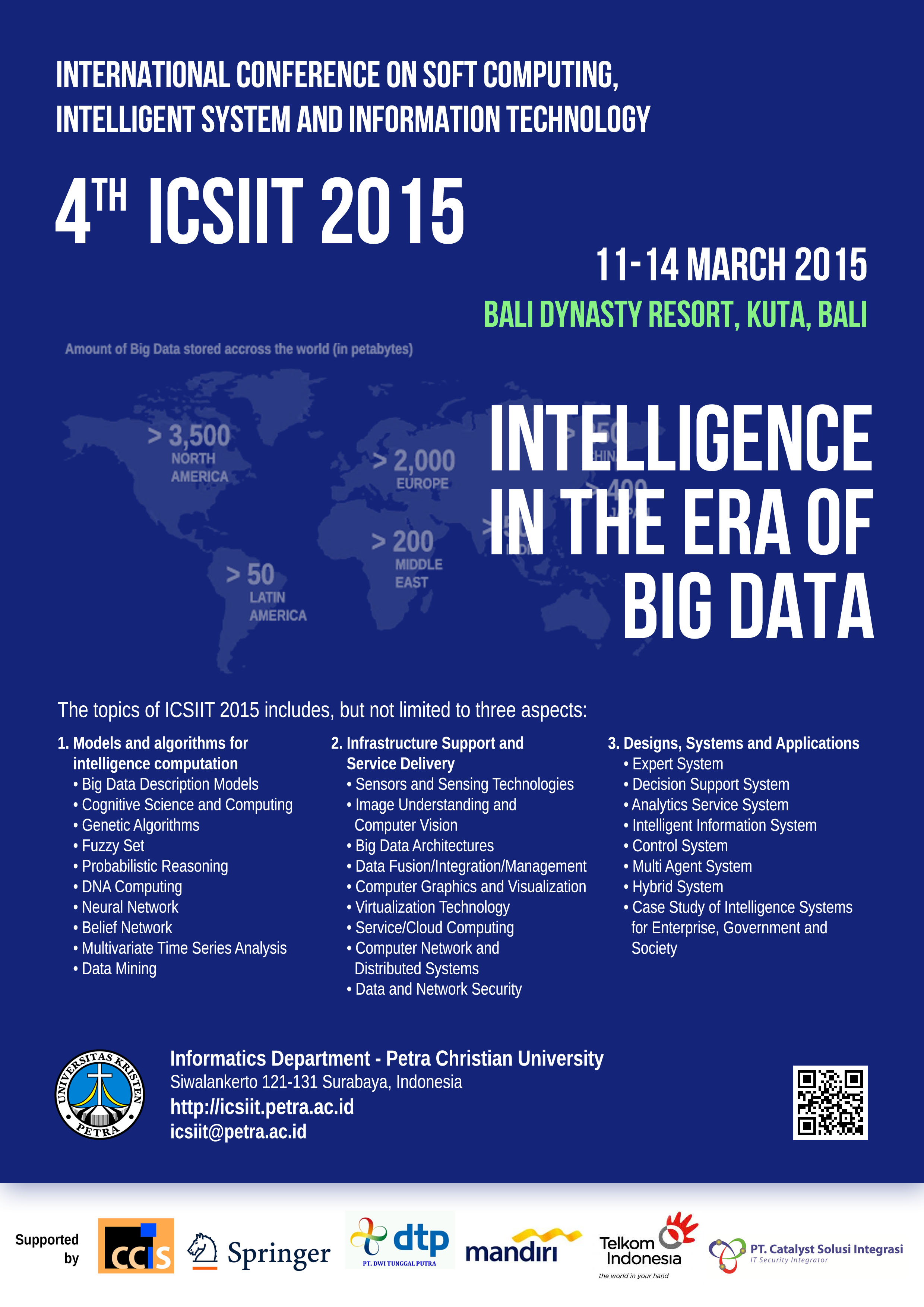 International Conference on Soft Computing, Intelligent System and Information Technology 4th adalah kegiatan yang diselenggarakan oleh Prodi Informatika UK Petra. ICSIIT telah dilaksanakan sebanyak 4 kali. Kegiatan dilaksanakan pada tanggal 11-14 Maret 2015 bertempat di Bali Dynasty Resort, Kuta, Bali. Dengan mengangkat tema "Intelligence in the era of big data."