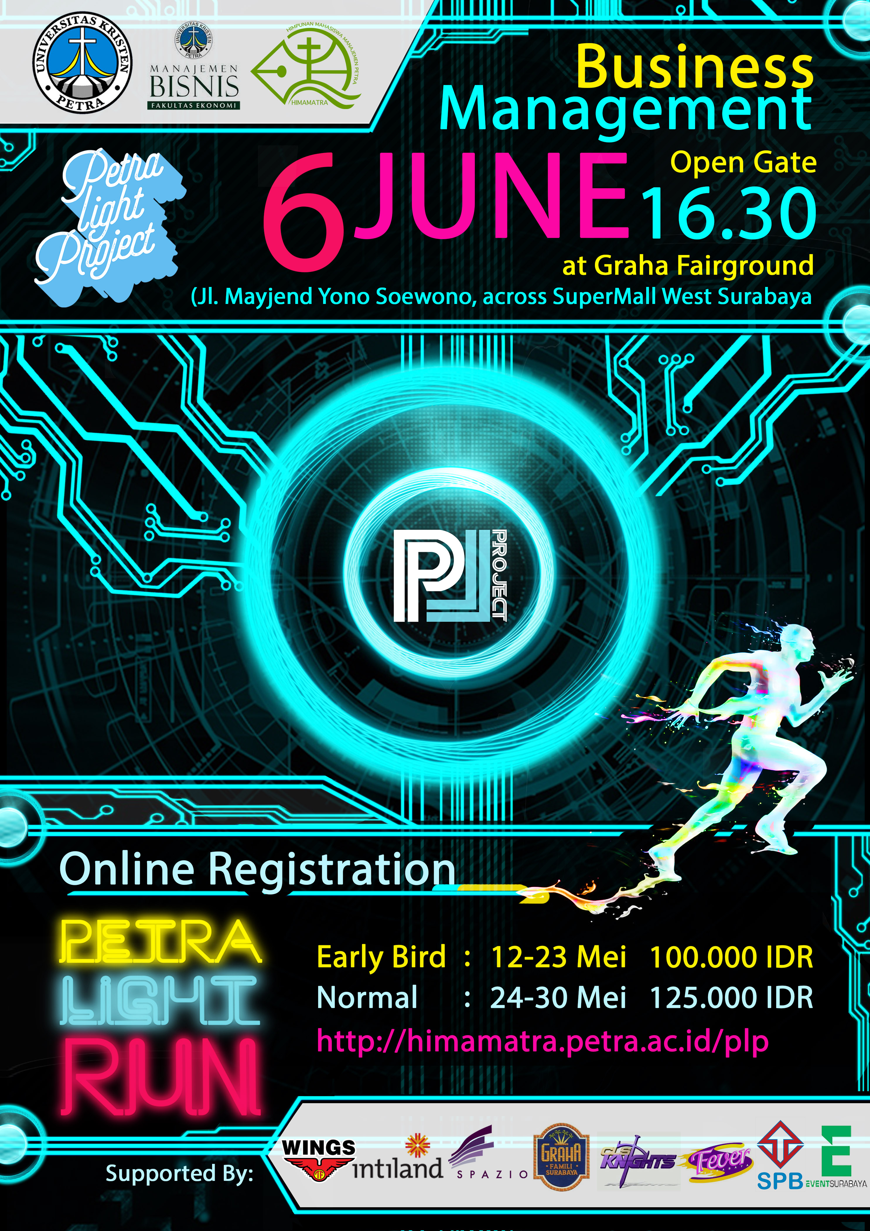 Program Studi Manajemen Bisnis UK Petra, kembali menyelenggarakan berbagai macam acara, untuk memperingati hari jadinya yang akan dimeriahkan dengan PL Project. PL Project atau Petra Light Run dilaksanakan pada tanggal 6 Juni pada pukul 16.30 WIB bertemopat di Graha Fairground. Biaya pendaftaran terbagi menjadi 2 yaitu seharga Rp 100.000 dan Rp 125.000