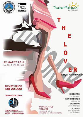 Gelaran drama dengan judul the Lover ditampilkan di PLT UK Petra. Karya Harold Pinter ini dipentaskan pada 22 Maret 2016 bertempat di gedung B. lantai 2 Universitas kristen Petra, disutradarai oleh Edi Sutardi.