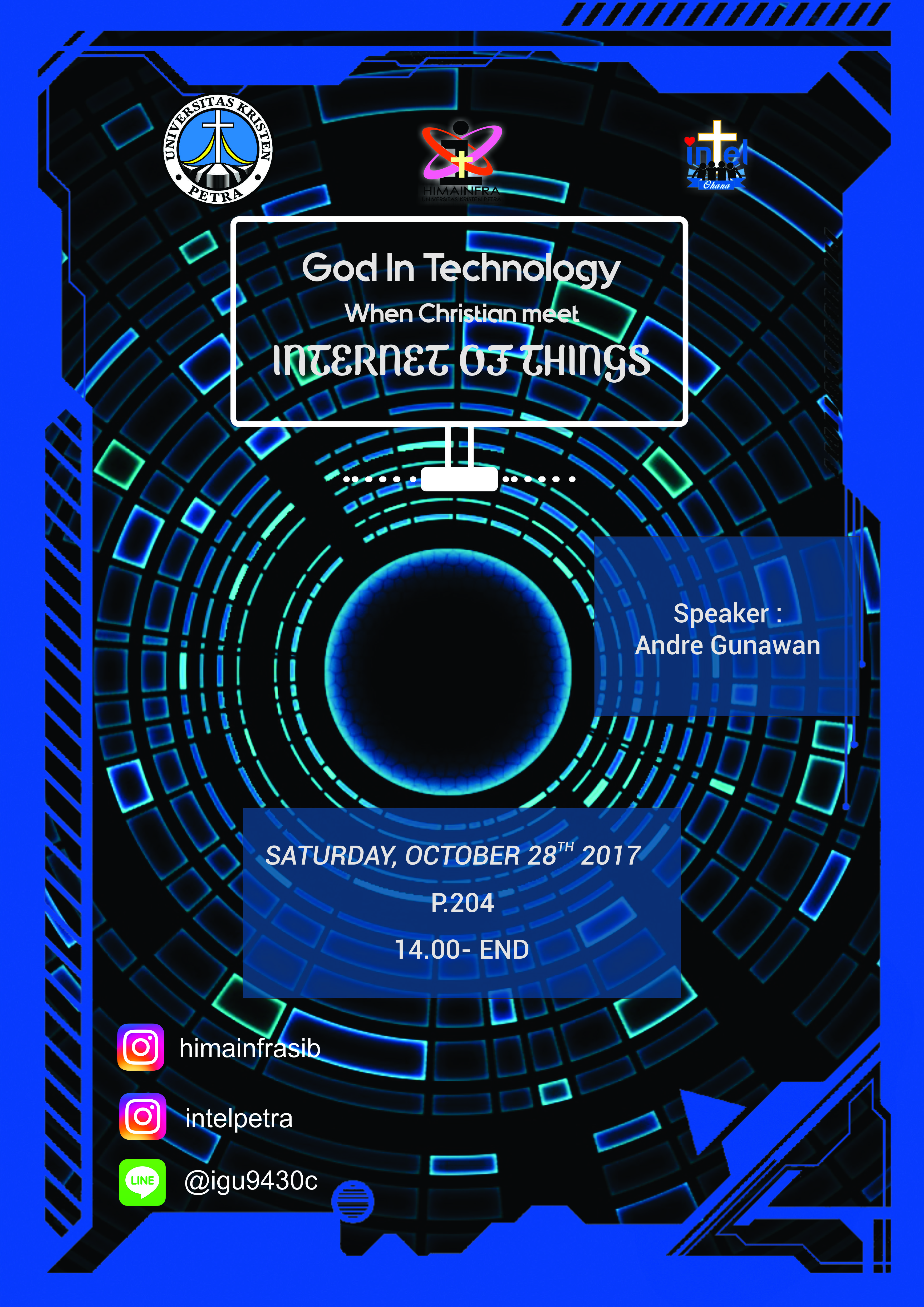 Program Studi Teknik Informatika mengajak mahasiswa teknik informatika UK Petra, untuk bergabung dalam kebaktian jurusan yang diadakan pada 28 Oktober 2017, di ruang P.204. Dengan menghadirkan bapak Andre Gunawan sebagai pembicara.