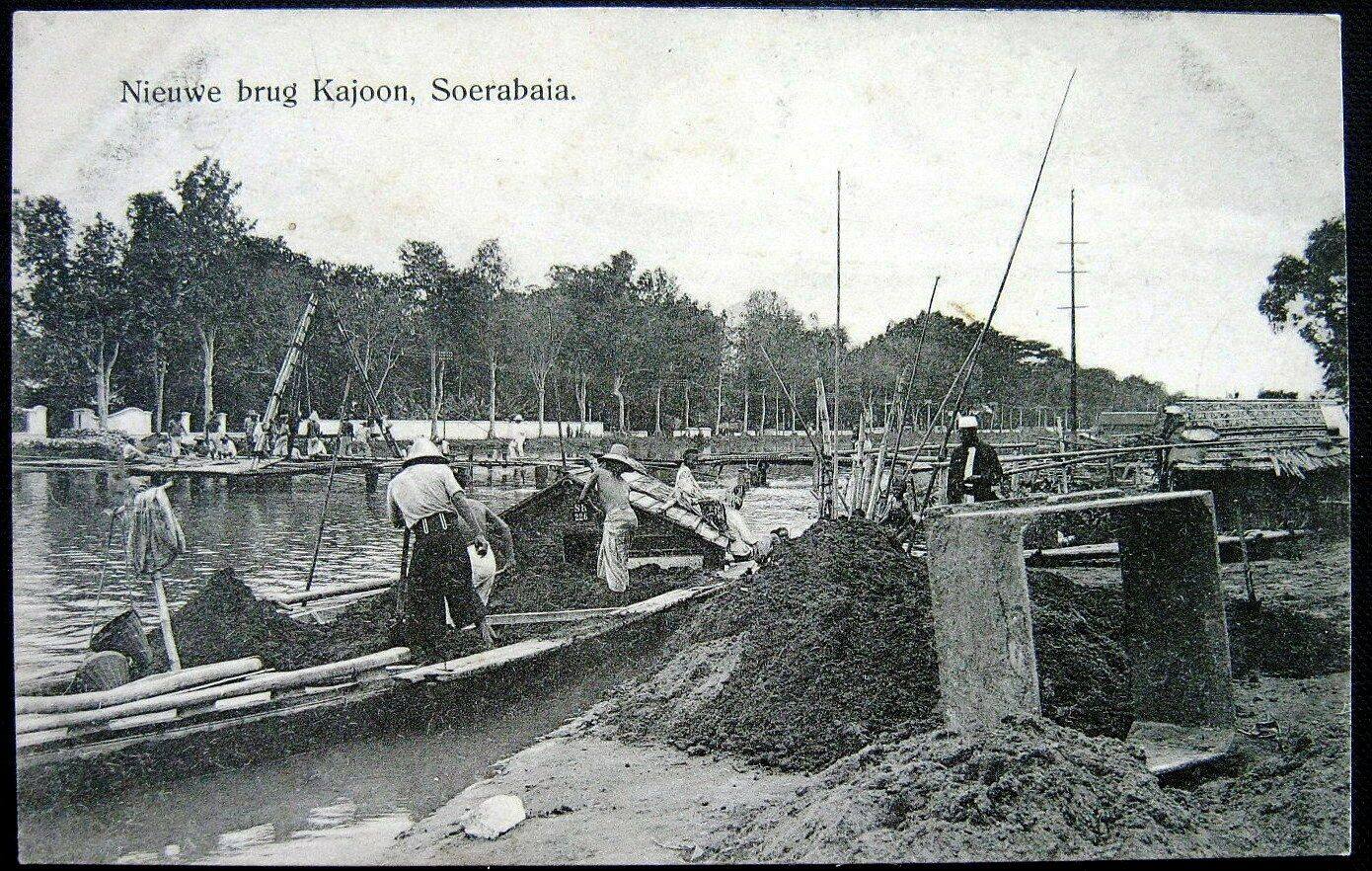 Pembangunan jembatan baru Kayoon, Surabaya sekitar tahun 1900
