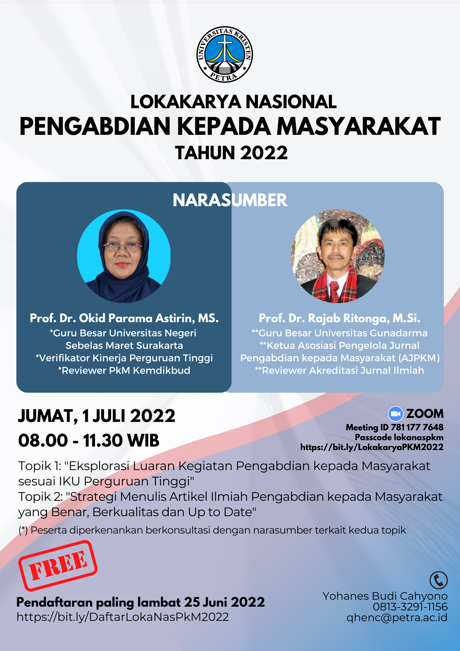Untuk itu LPPM Universitas Kristen Petra Surabaya mengadakan Lokakarya nasional pengabdian kepada masyarakat tahun 2022, yang diadakan pada tanggal 01 Juli 2022. Dalam lokakarya ini peserta akan mendapatkan pemahaman tentang hakekat sebuah Luaran dan bagaimana strategi mengeksplorasinya. Selain itu juga akan memperoleh tips jitu menulis artikel PkM yang memiliki bobot ilmiah dan senantiasa up to date mengikuti dinamika perkembangan IPTEKS.