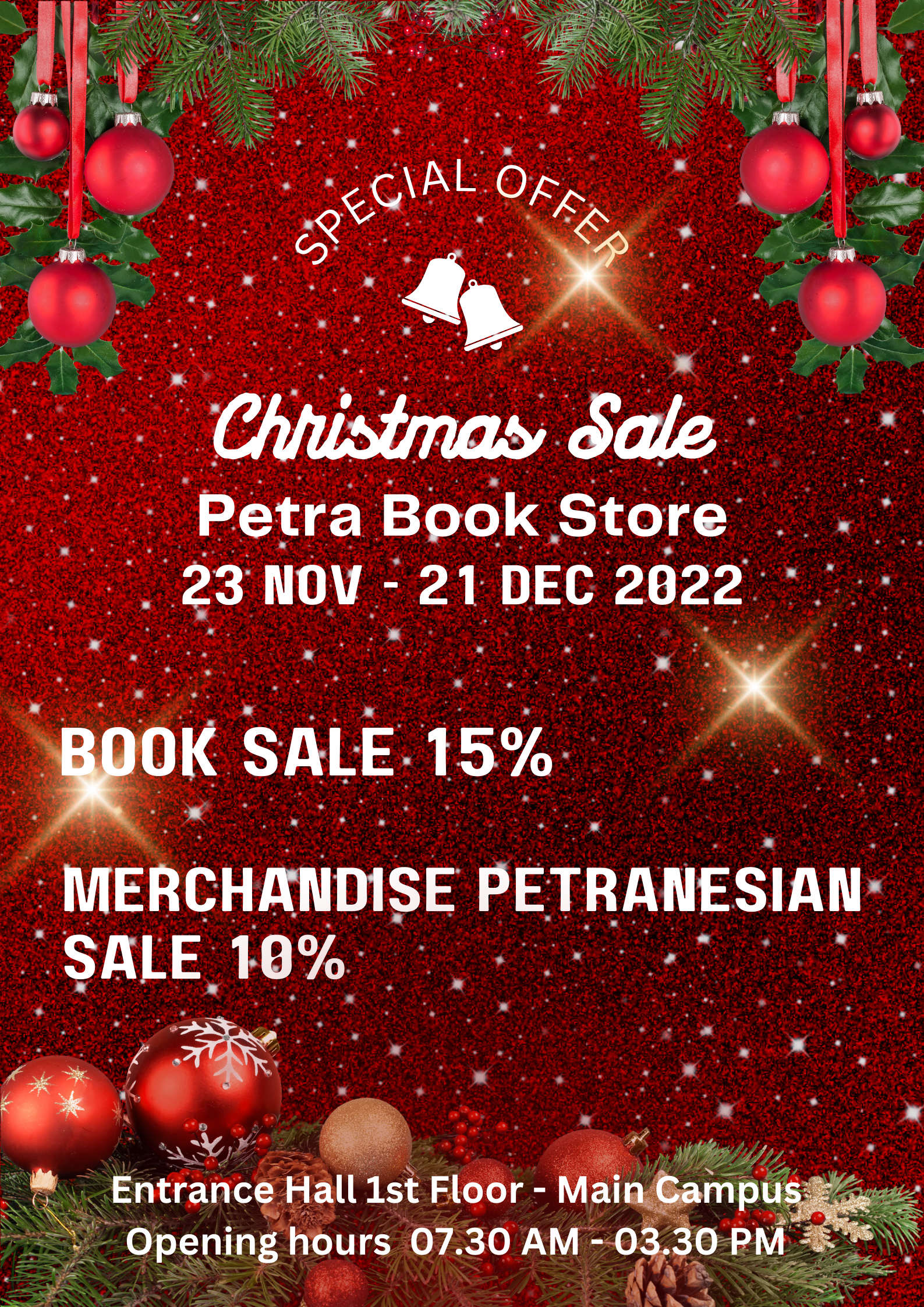 Menyambut Hari Natal 2022, Petra Book Store mengadakan discount harga buku hingga 15%. Program ini dimulai dari tanggal 23 Nov - 21 Des 2022.