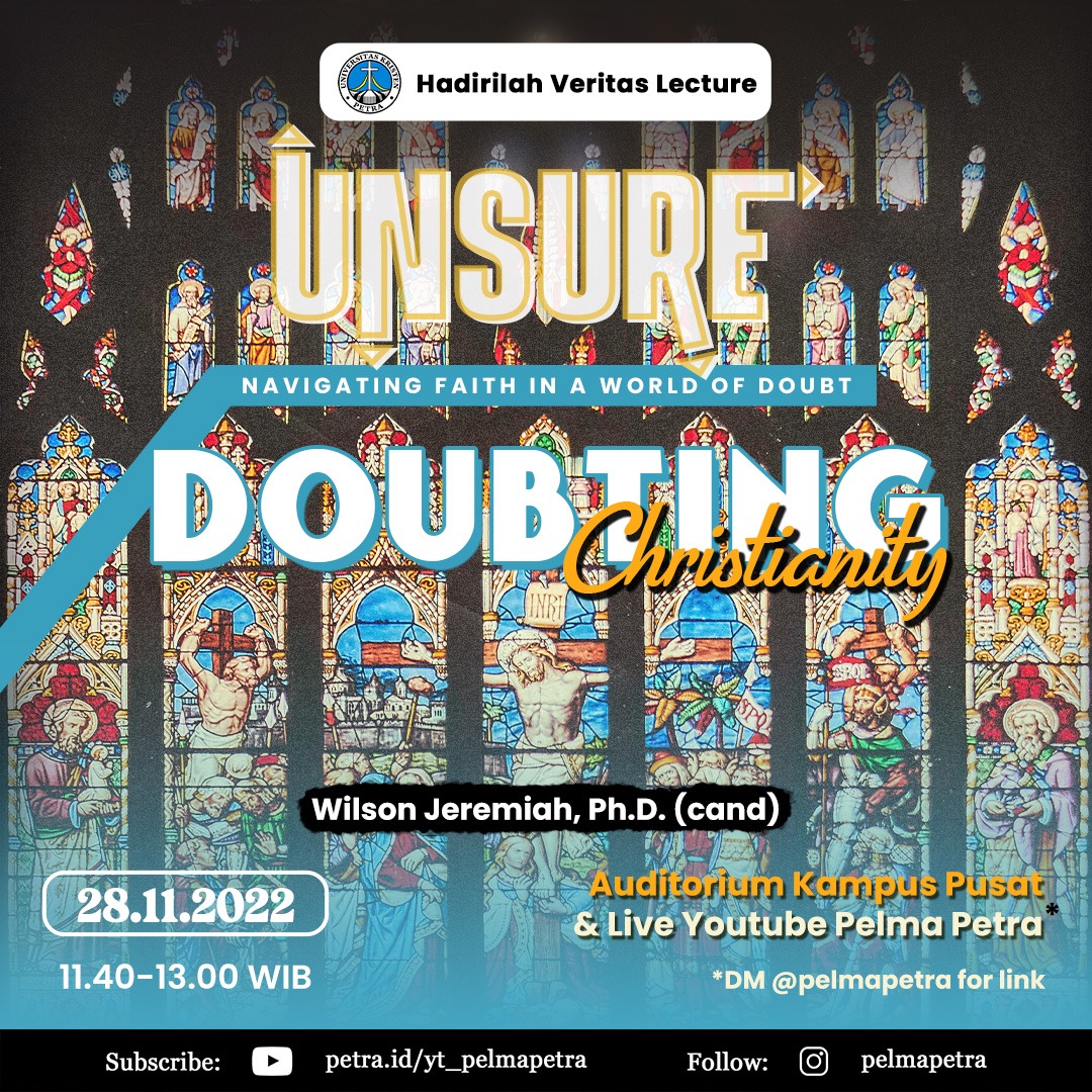 Pada tanggal 28 November 2022 jam 11.30 - 13.00 WIB, bertempat di Auditorium Kampus Pusat UK Petra diadakan kebaktian Veritas Lecture dengan topik "Unsure Doubting Christianity". Dengan menghadirkan Wilson Jeremiah, Ph.D (cand