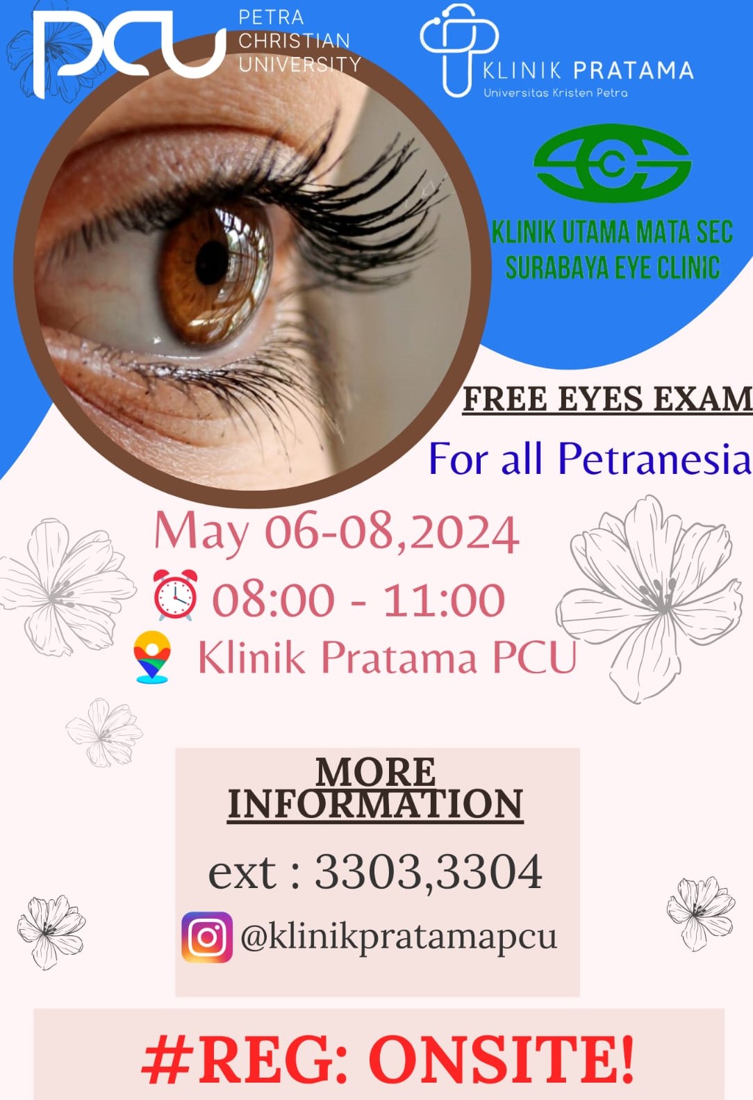 Poliklinik UK Petra mengadakan pemeriksaan gratis, acara ini dilaksanakan pada 06 Mei 2024 jam 08.00 - 11.00 WIB bertempat di Klinik Pratama UK Petra Surabaya.