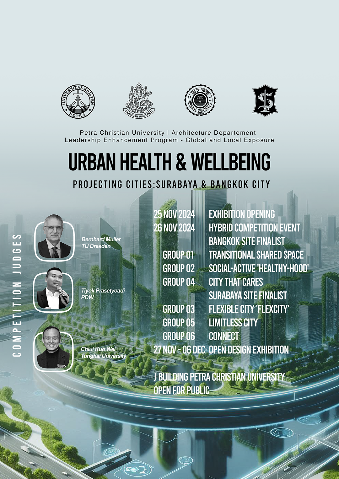 Pameran design arsitektur dengan tema "urban health and wellbeing" diselengarakan oleh Teknik Arsitektur Universitas Kristen Petra Surabaya. Pada 27 Nov - 06 Dec 2024 dikampus UK Petra.