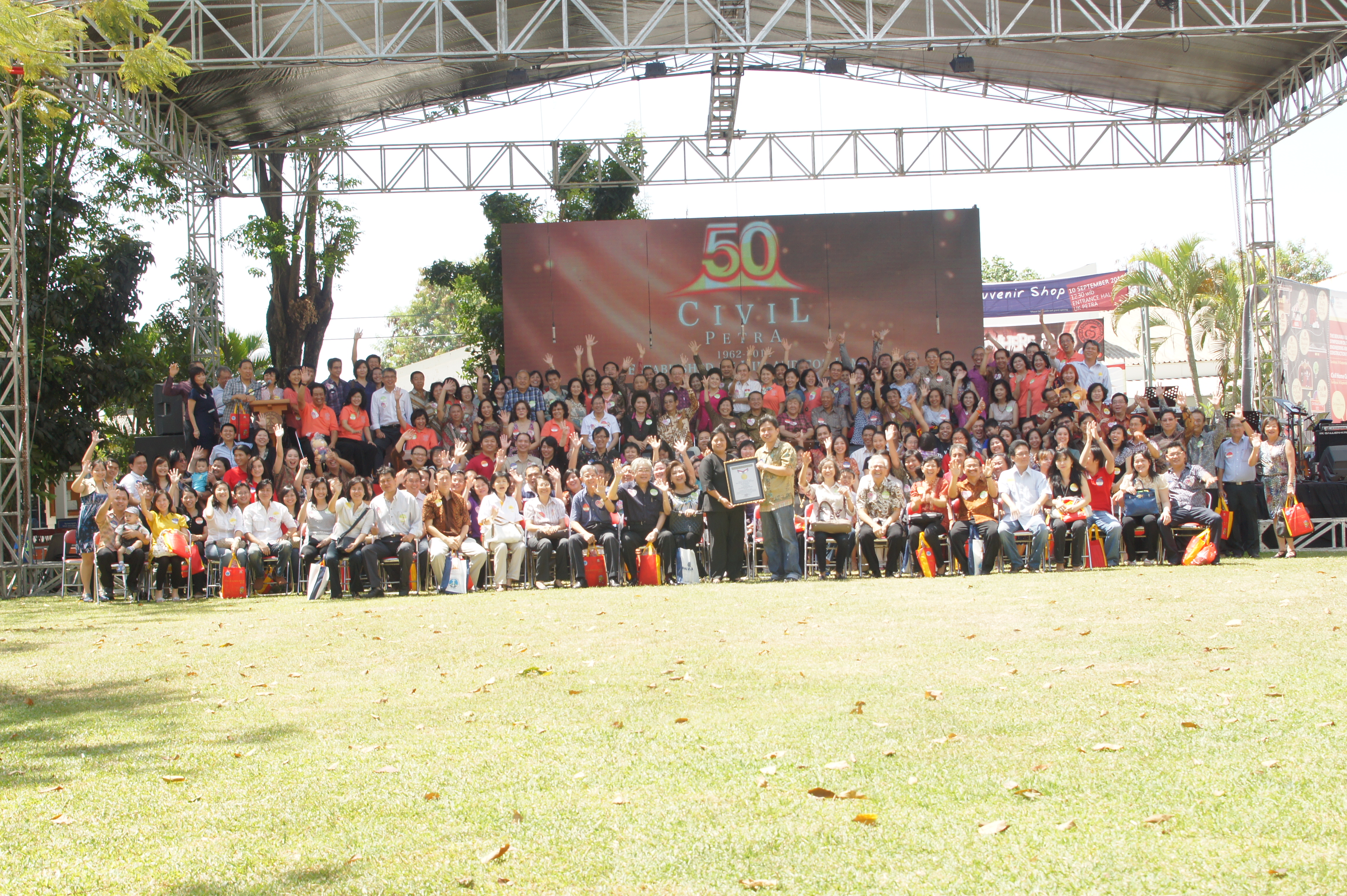 Penyerahan piagam penghargaan Museum Rekor Indonesia (MURI) kepada Jurusan Teknik Sipil Universitas Kristen Petra atas rekor "Pemrakarsa Pasangan Suami Istri Terbanyak yang Berasal dari Jurusan Teknik Sipil UK Petra" pada acara Civil Golden Jubilee 2012" 15 September 2012 di Kampus UK Petra. Penghargaan diterima oleh Ketua Jurusan Teknik Sipil Dr. Daniel Tjandra, S.T., M.Eng.