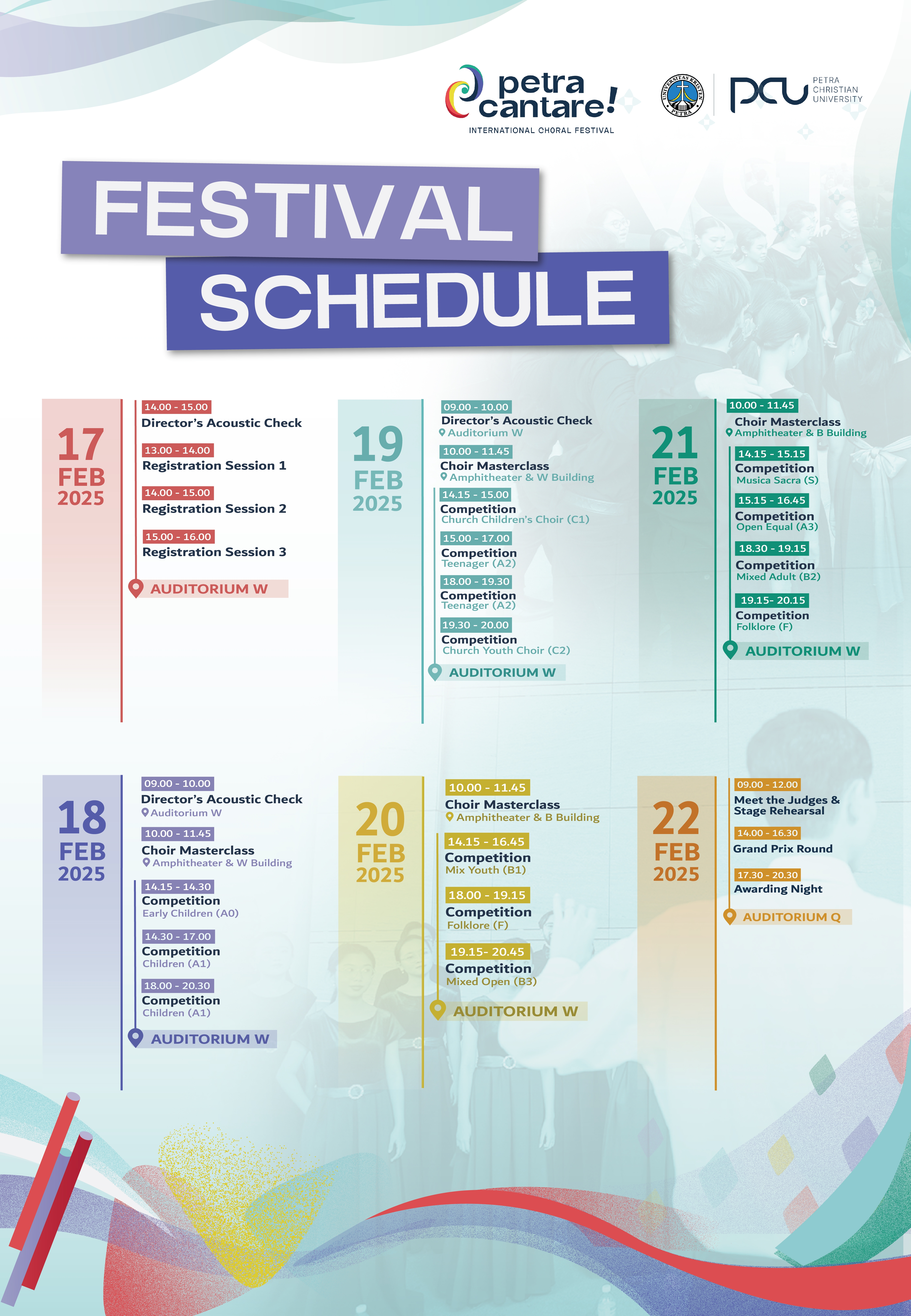 Poster ini menjelaskan jadwal acara Petra Cantare Choral Festival 2025