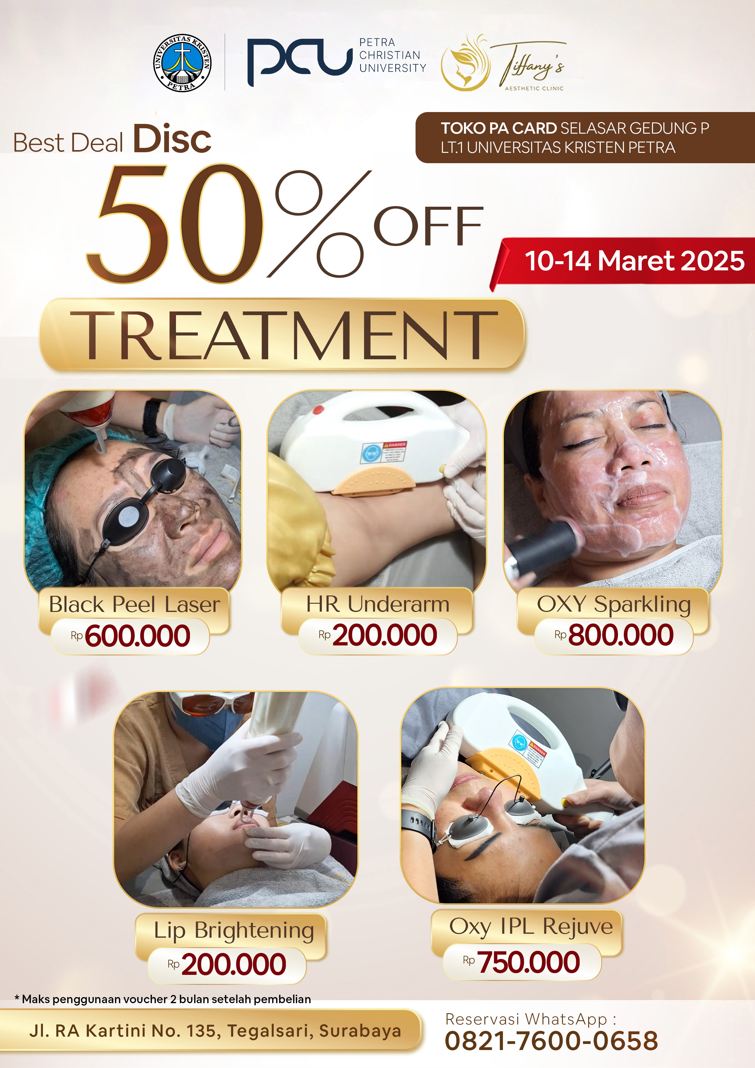 Cukup tunjukkan kartu identitas PCU Family di Booth Tiffany's Aesthetic Clinic.