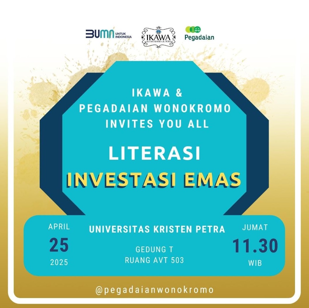 Pada Jumat, 25 April 2025 jam 11.30 WIB, bertempat di AV.T.503. Ikatan Wanita UK Petra (Ikawa) mengadakan pertemuan yang bekerjasama dengan Pegadaian cabang Wonokromo. Topik yang diangkat adalah Literasi Investasi Emas