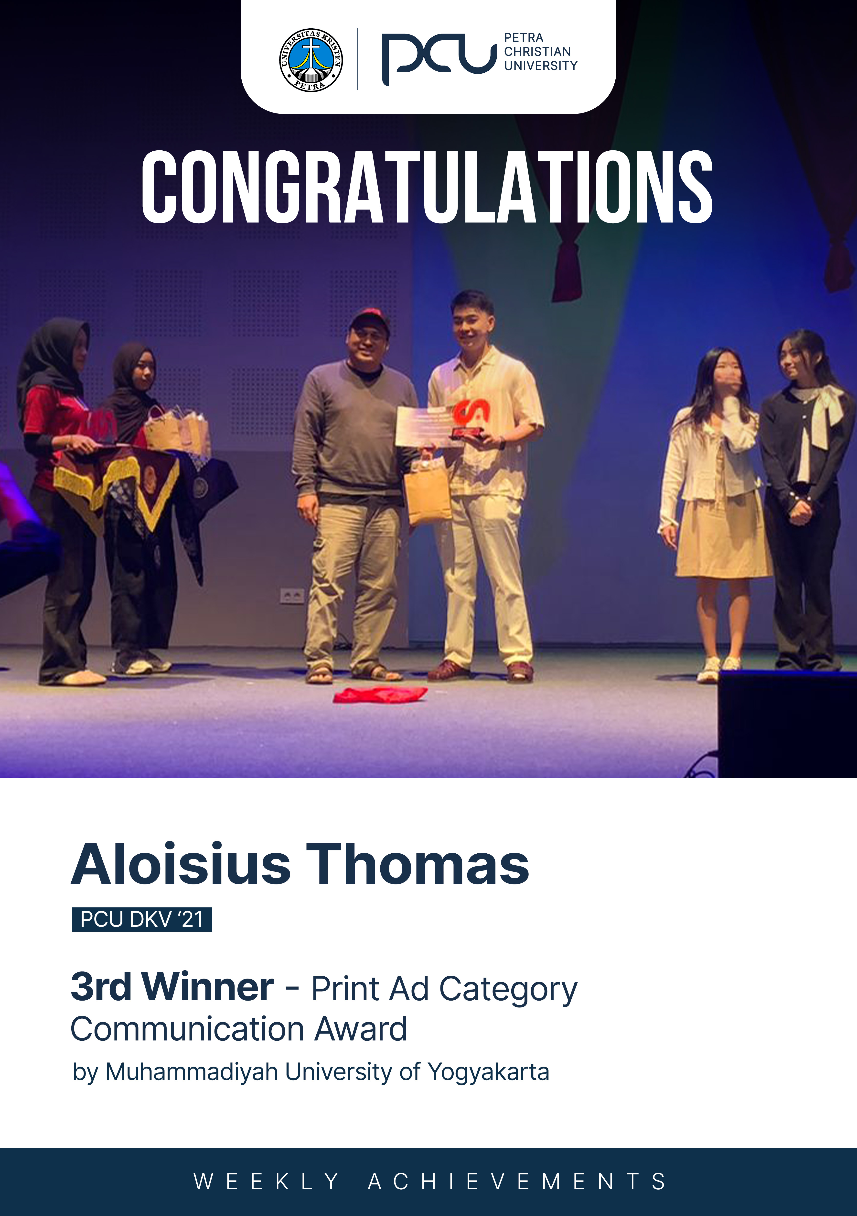 Selamat atas prestasi yang diraih oleh Aloisius Thomas sebagai 3rd Winner dalam Print Ad Category Communication Award by Muhammadiyah University of Yogyakarta