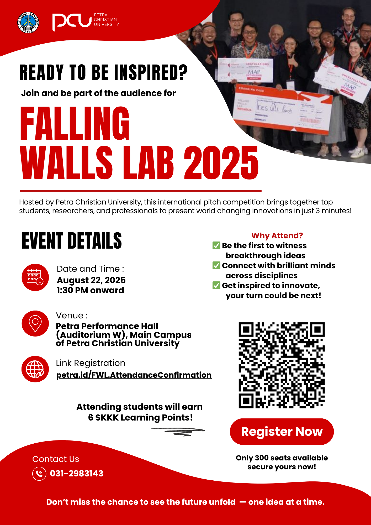 Lembaga Penelitian dan Pengabdian Masyarakat Universitas Kristen Petra Surabaya menyelenggara Kompetisi tentang inovasi dan sains. Kompetisi presentasi antar disiplin ilmu tingkat Global untuk mahasiswa dan profesional diawal karir. Pendaftaran lomba diadakan pada 22 Agustus 2025.