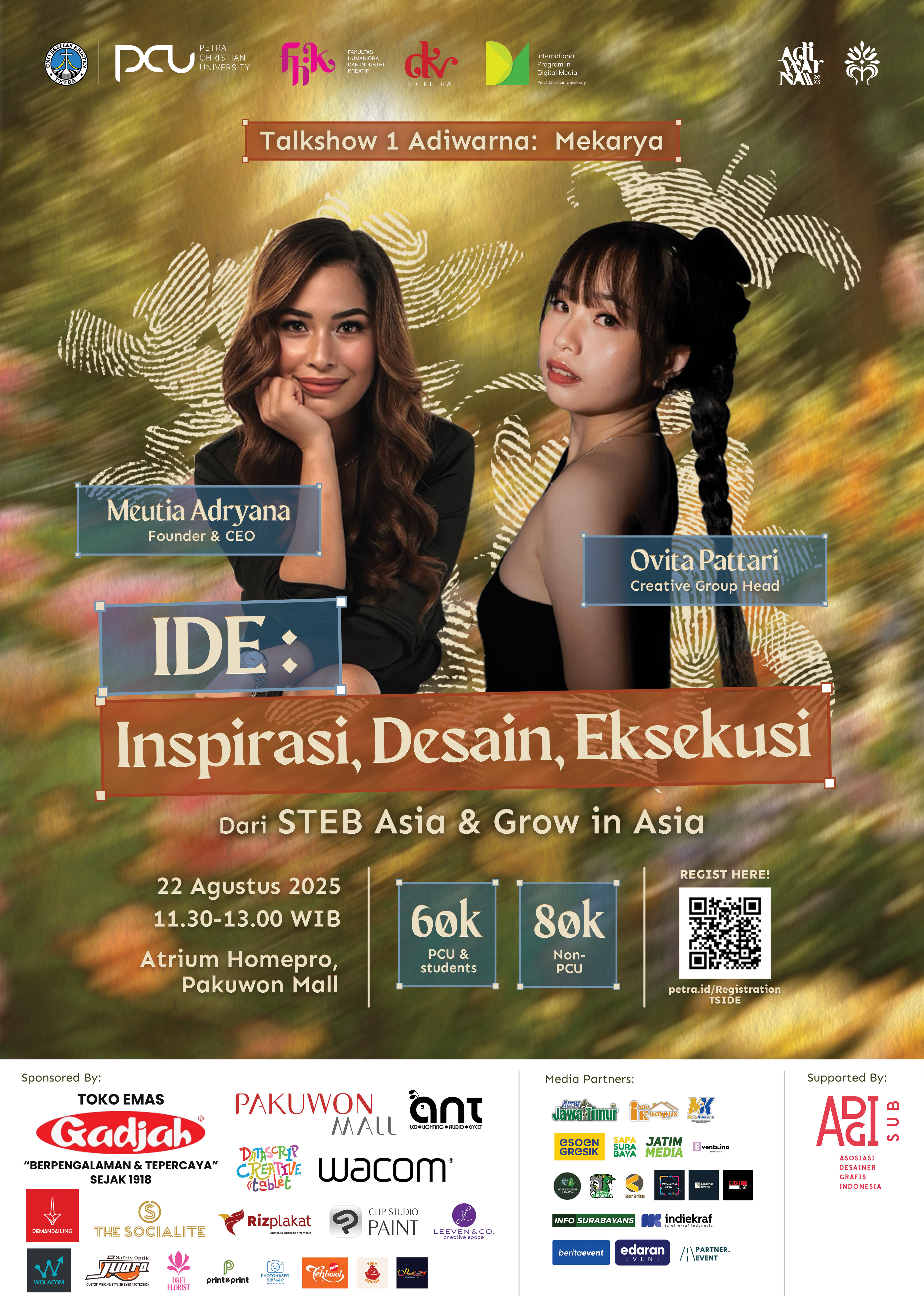Program Studi Desain Komunikasi Visual Universitas Kristen Petra Surabaya mengadakan acara Talkshow 2 Adiwarna: berkarir dibalik lensa. Acara ini diselenggarakan pada 22 Agustus 2025 jam 11.30 - 13.00 WIB bertempat di Atrium Homepro Pakuwon Mall Surabaya. Dengan narasumber Muetia Adryana dan Ovita Pattari