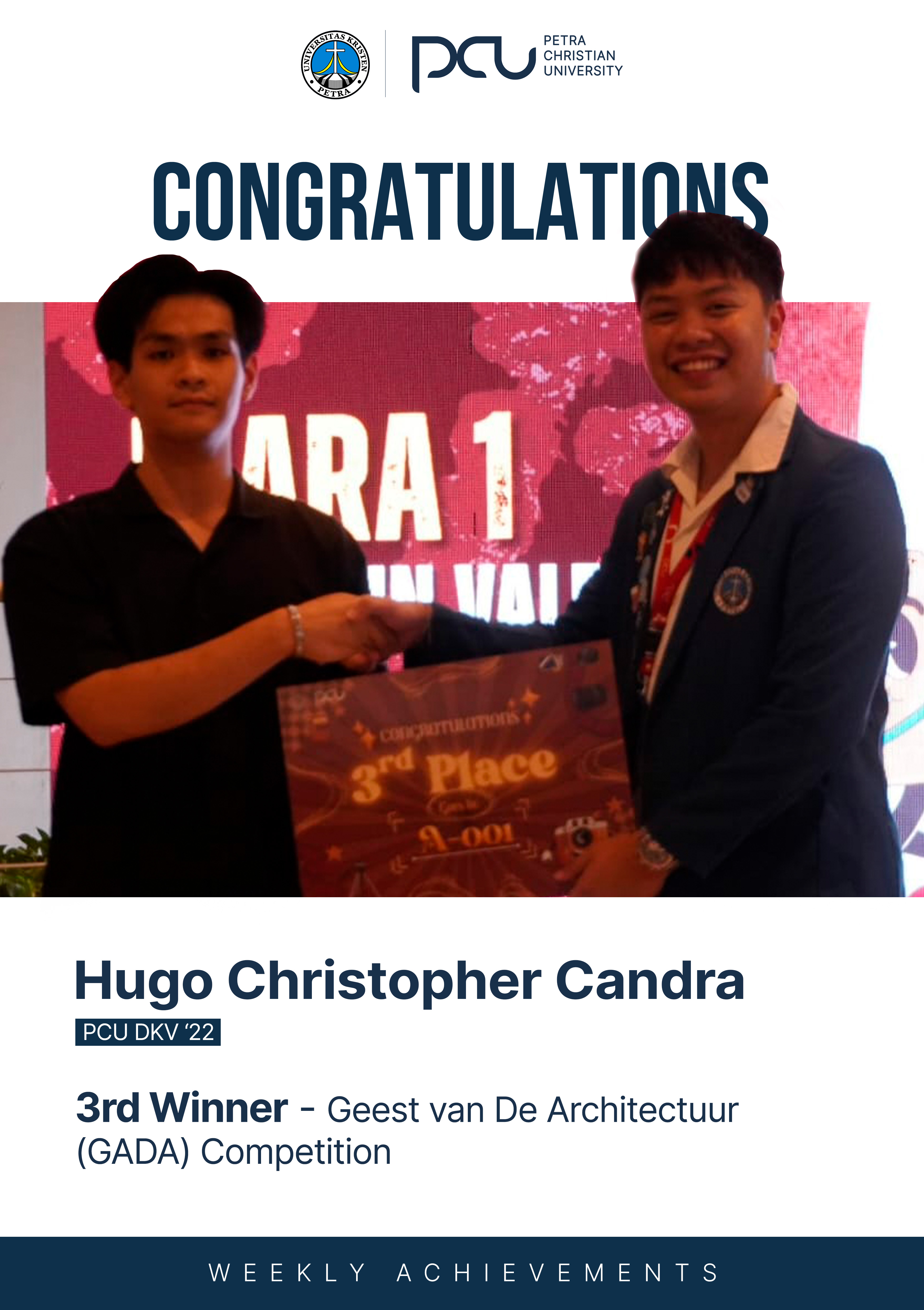 Selamat atas prestasi yang diraih oleh Hugo Christoper Candra sebagai 3rd Winner dalam Geest van De Architecture (GADA) Competition