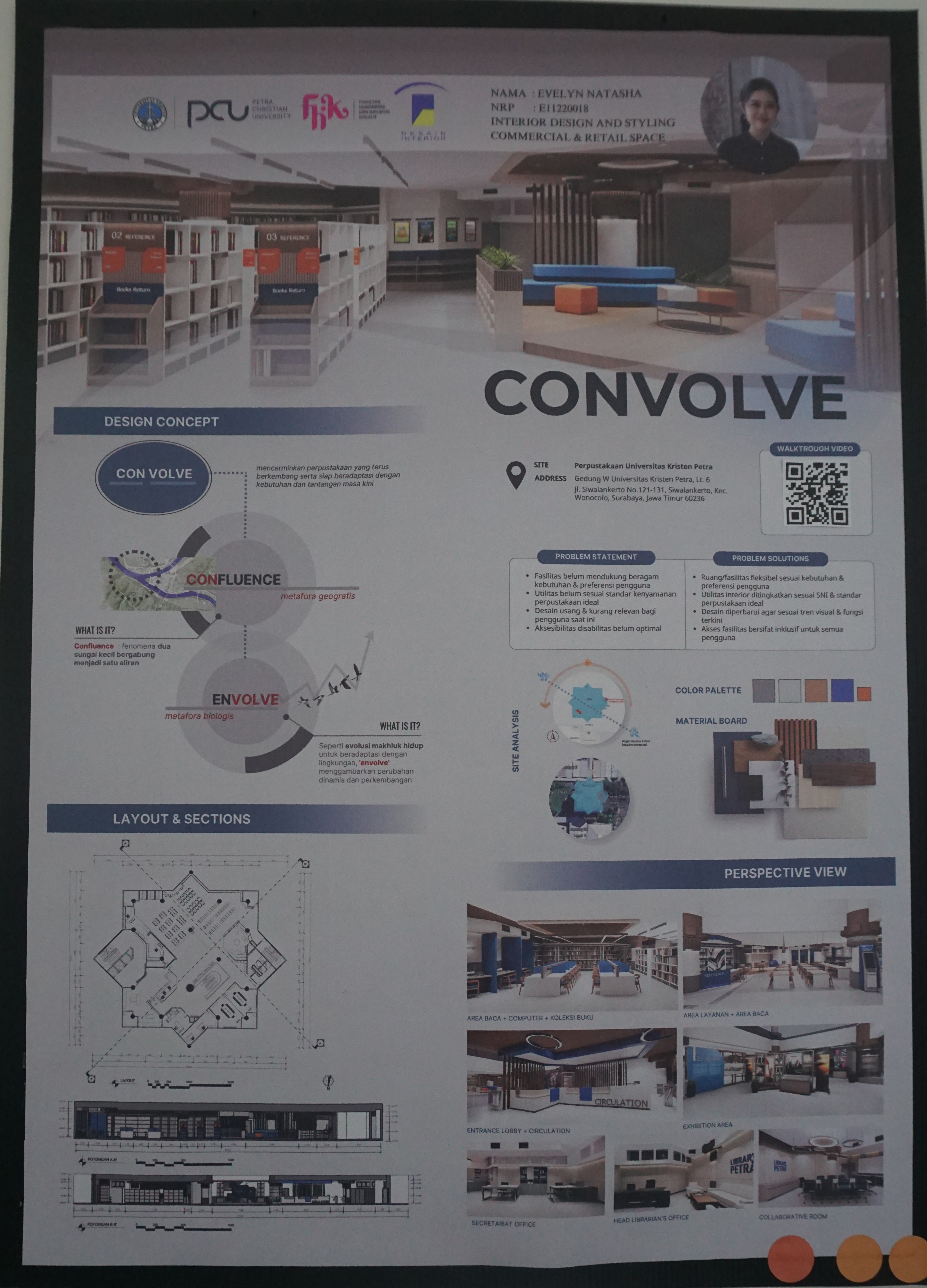 Dalam rangka menyemarakkan 27 tahun Prodi Desain Interior diselenggarakan seminar Insight bersama alumni dan pengguna lulusan, serta rangkaian acara IDE+ (Interior Design Exhibition and Workshop) 18-20 Juni 2025 yang menyajikan berbagai karya mata kuliah Personal Space, Presentasi Visual, Interior Design for Workspace, Furniture Design for Workspace, Interior Design for Cultural Space, Interior Product Design For Cultural Space, Craft and Furnishing, dan LEAP Final Project. Dalam pameran IDE+ tahun ini disajikan pula hasil karya kolaborasi project based learning Prodi Desain Interior PCU - UCSI dan UiTM. Salah satu materi pameran ini ialah Convolve: interior design and styling cultural space. Karya Evelyn Natasha (E11220018).