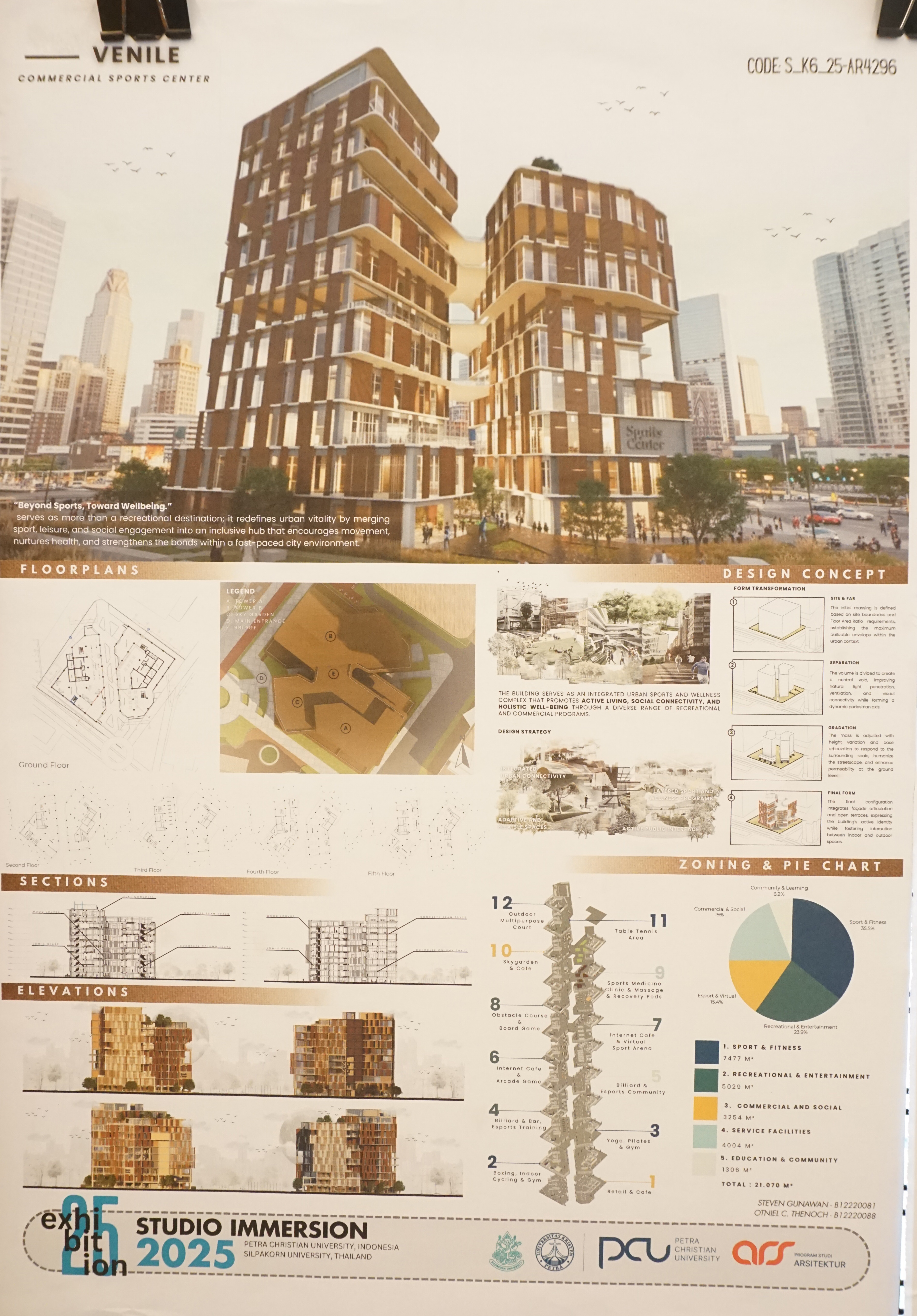 Salah satu karya yang dipamerkan adalah Venile: commercial sports center karya dari Steven Gunawan (B12220081) serta Otniel C. Thenoch (B12220088)