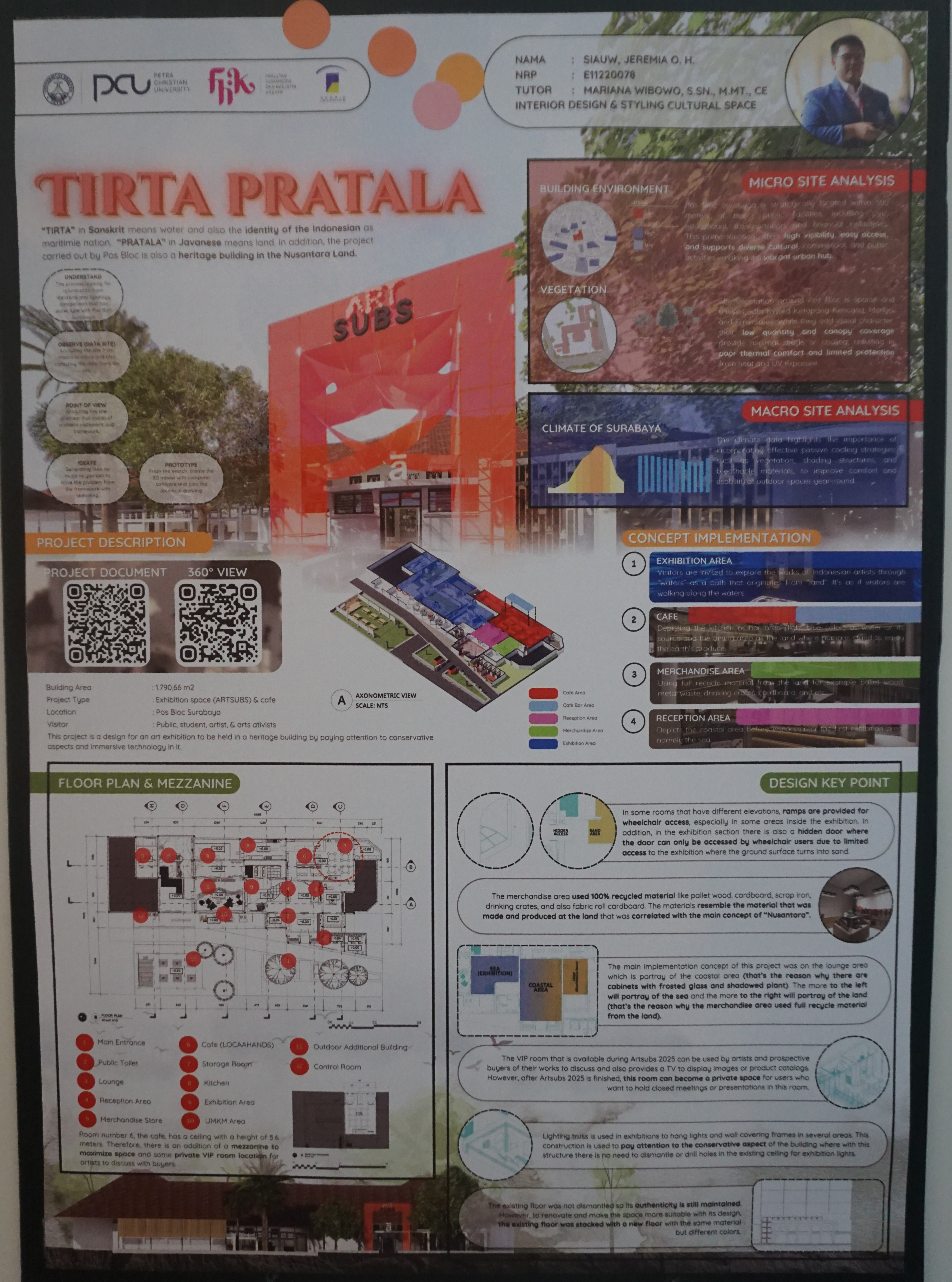 Dalam rangka menyemarakkan 27 tahun Prodi Desain Interior diselenggarakan seminar Insight bersama alumni dan pengguna lulusan, serta rangkaian acara IDE+ (Interior Design Exhibition and Workshop) 18-20 Juni 2025 yang menyajikan berbagai karya mata kuliah Personal Space, Presentasi Visual, Interior Design for Workspace, Furniture Design for Workspace, Interior Design for Cultural Space, Interior Product Design For Cultural Space, Craft and Furnishing, dan LEAP Final Project. Dalam pameran IDE+ tahun ini disajikan pula hasil karya kolaborasi project based learning Prodi Desain Interior PCU - UCSI dan UiTM. Salah satu materi pameran ini ialah Tirta Pratala: interior design and styling cultural space. Karya Siauw, Jeremia O. H. (E11220078).