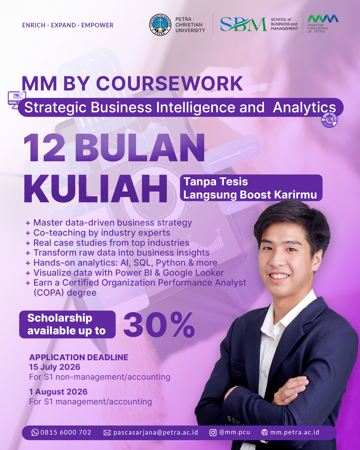 dengan jalur Strategic Business Intelligence and Analytics. 12 bulan kuliah tanpa tesis langsung