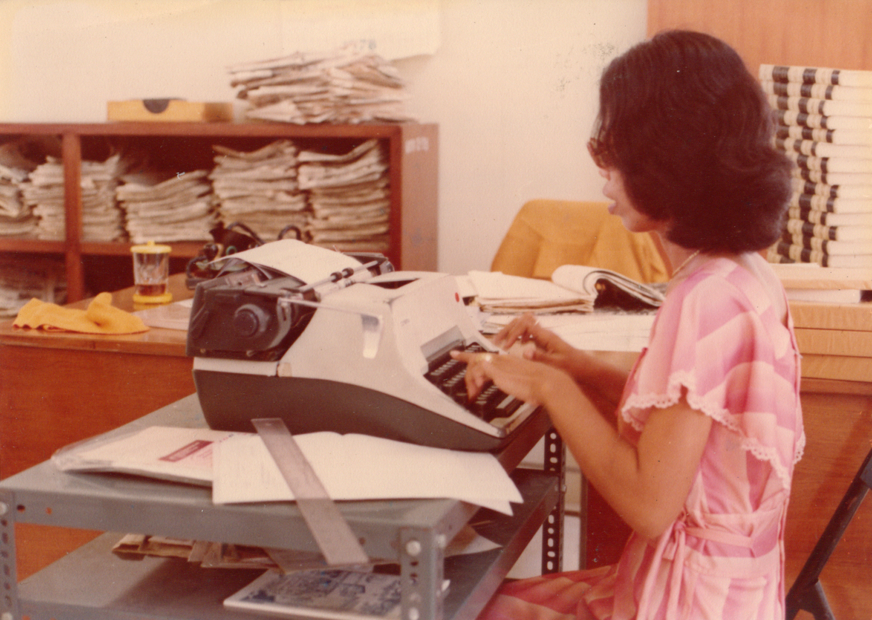 Dokumentasi karyawan dan pimpinan perpustakaan Universitas Kristen Petra Jalan Kalianyar tahun 1978