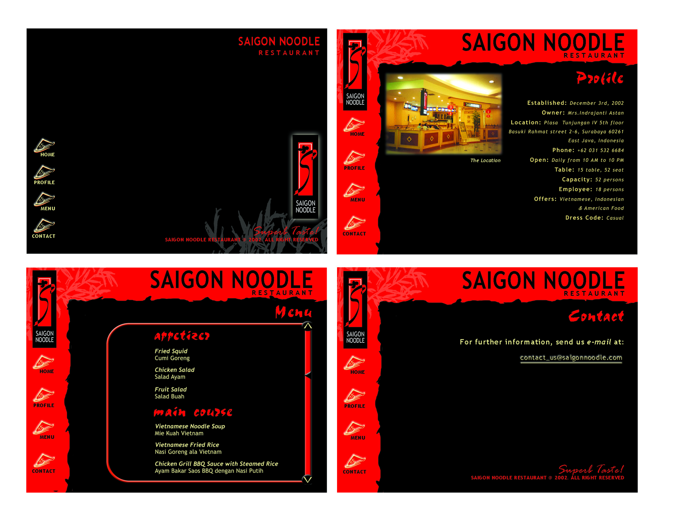 Tunjungan IV). Saigon Noodle Restaurant menyajikan jenis hidangan baru yang