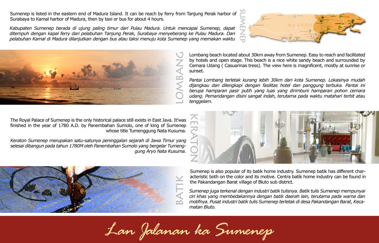 Jalanan ka Sumenep" menceritakan tentang wisata di Sumenep. Konsep