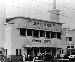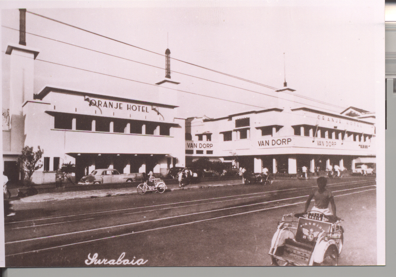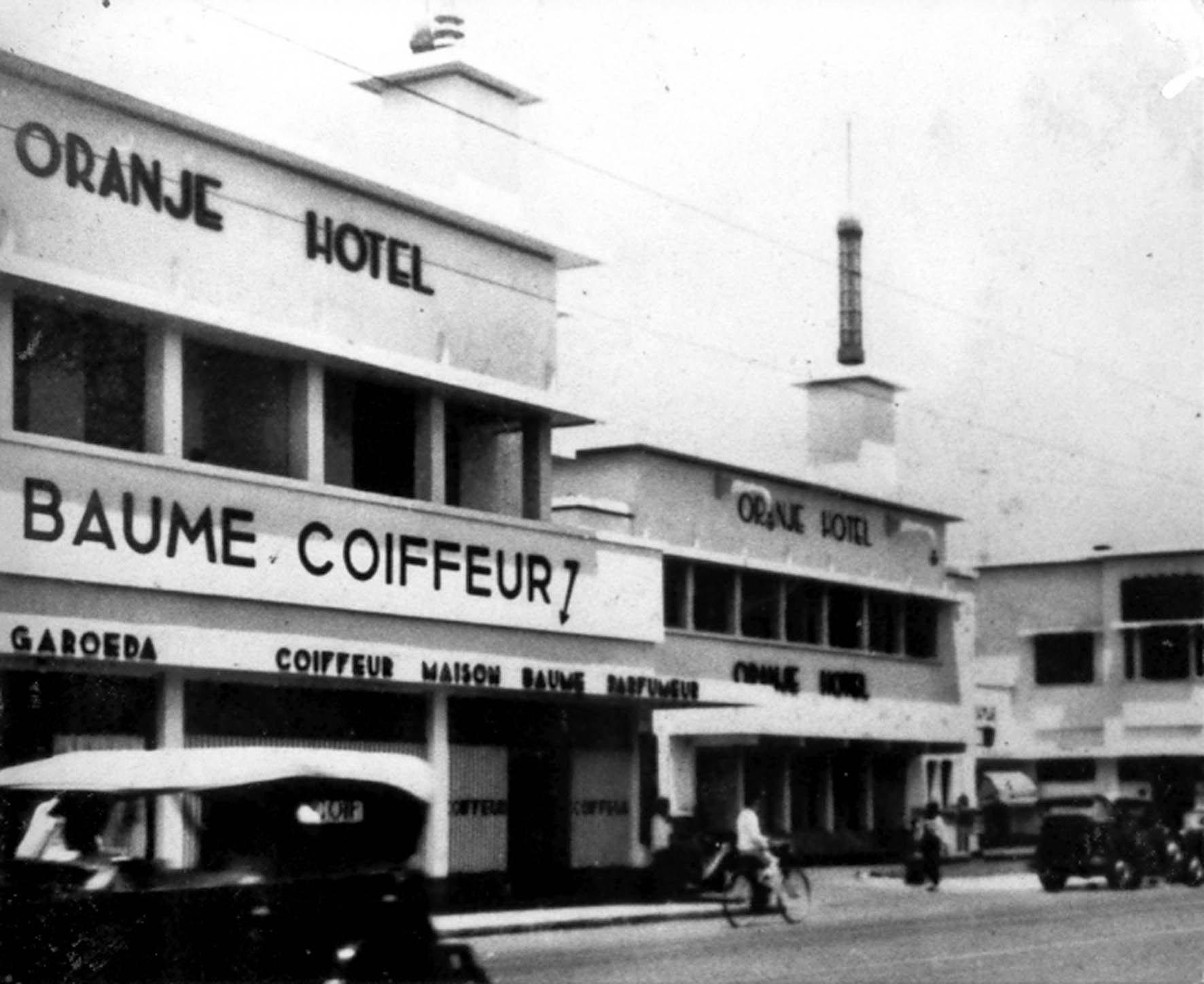Dokumentasi foto Hotel Oranje. Saat ini dikenal sebagai Mandarin Oriental Hotel Majapahit yang berlokasi di Jalan Tunjungan 65, Surabaya.