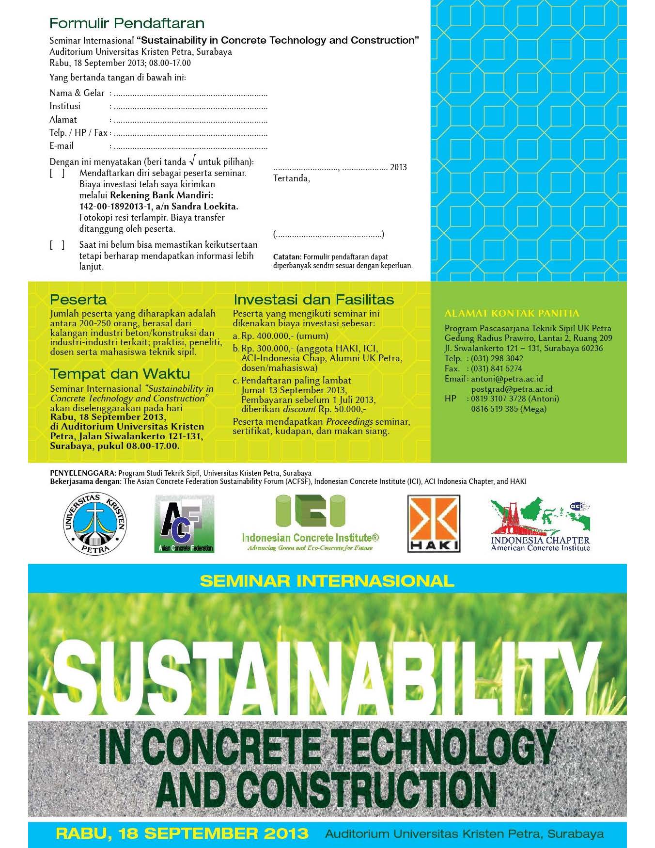 "Sustainability in Concrete Technology & Construction" pada hari Rabu,