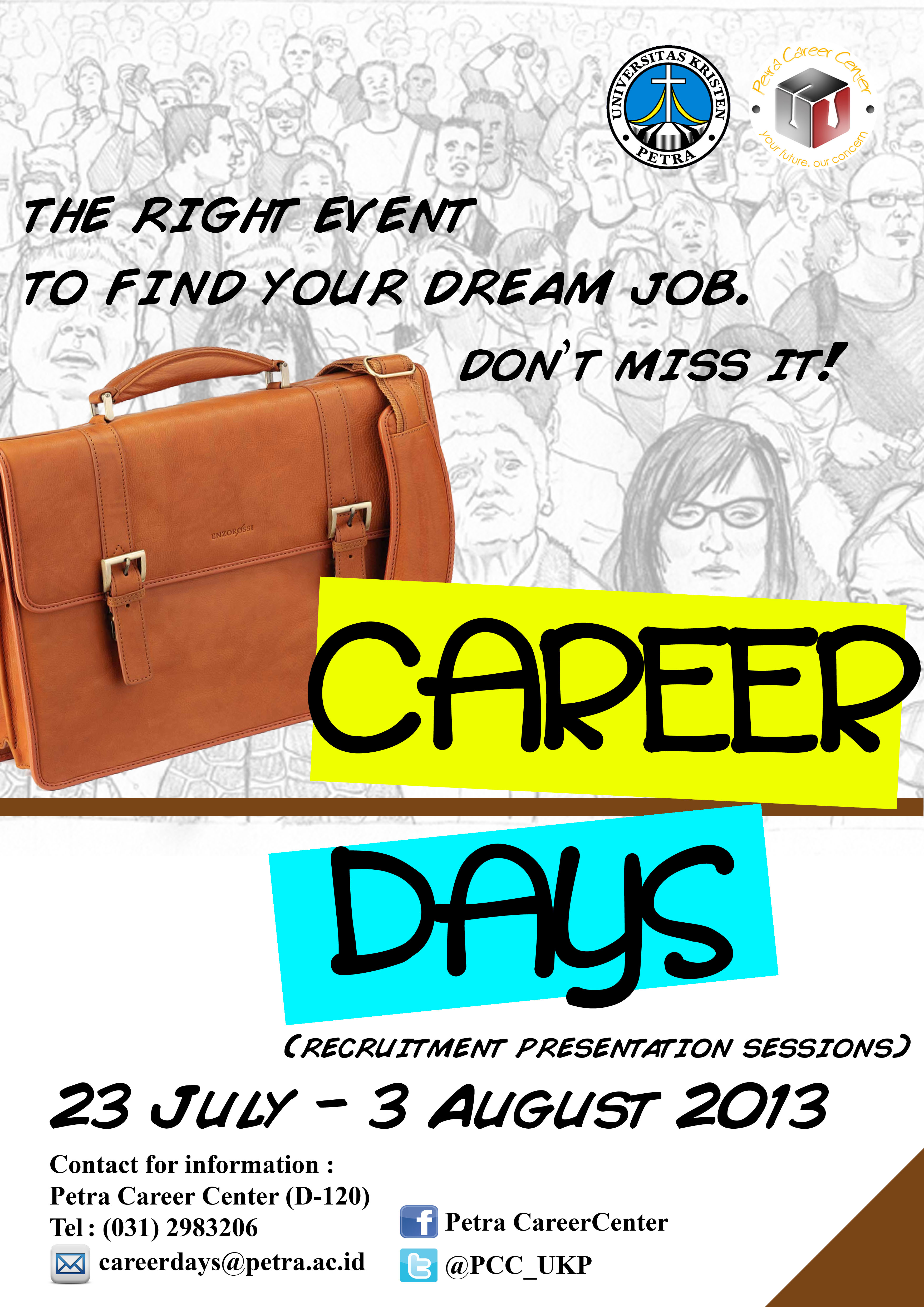 Career Days merupakan sebuah event yang digelar oleh Pusat Karir UK. Petra guna membantu mahasiswa mencari dan mendapatkan pekerjaan yang diinginkan. Acara ini digelar pada tanggal 23 - 3 Agustus 2013 di UK. Petra.