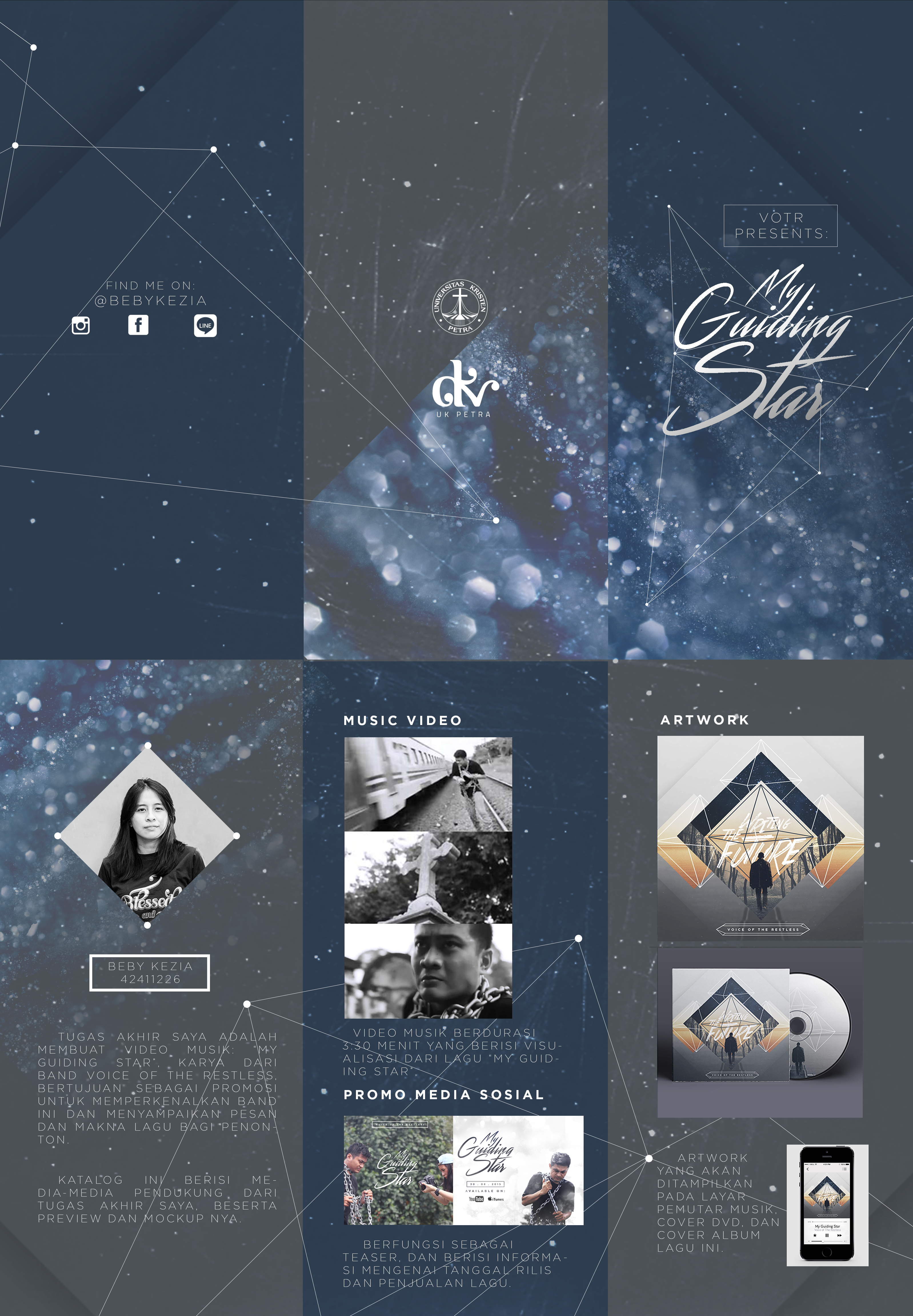 Semakin hari semakin banyak karya musik yang tercipta di sekitar kita, namun terkadang perhatian yang didapatkan oleh musisi tidak memenuhi target mereka, dikarenakan oleh persaingan yang semakin intens. Perancangan ini bertujuan untuk membuat sebuah video klip sebagai media promosi pengenalan pada khalayak tentang band dengan warna musik 'Contemporary Christian' yaitu Voice of The Restless. Band ini belum banyak dikenal oleh masyarakat karena band ini terbilang baru di dunia musik dan kurangnya kegiatan promosi untuk mengenalkan band ini kepada masyarakat luas walaupun sebelumnya mereka sudah mempunyai media sosial seperti Facebook, dan Instagram sebagai media promosi. Oleh karena itu pembuatan media ini sangat efektif, karena media video klip banyak digunakan oleh kalangan pemusik sebagai media pengenalan terhadap karya atau objek dari musisi tersebut. Kesimpulan skripsi perancangan ini adalah bagaimana membuat sebuah video klip musik sebagai media promosi yang nantinya juga sebagai media untuk menyampaikan pesan dan makna dari lagu band ini.