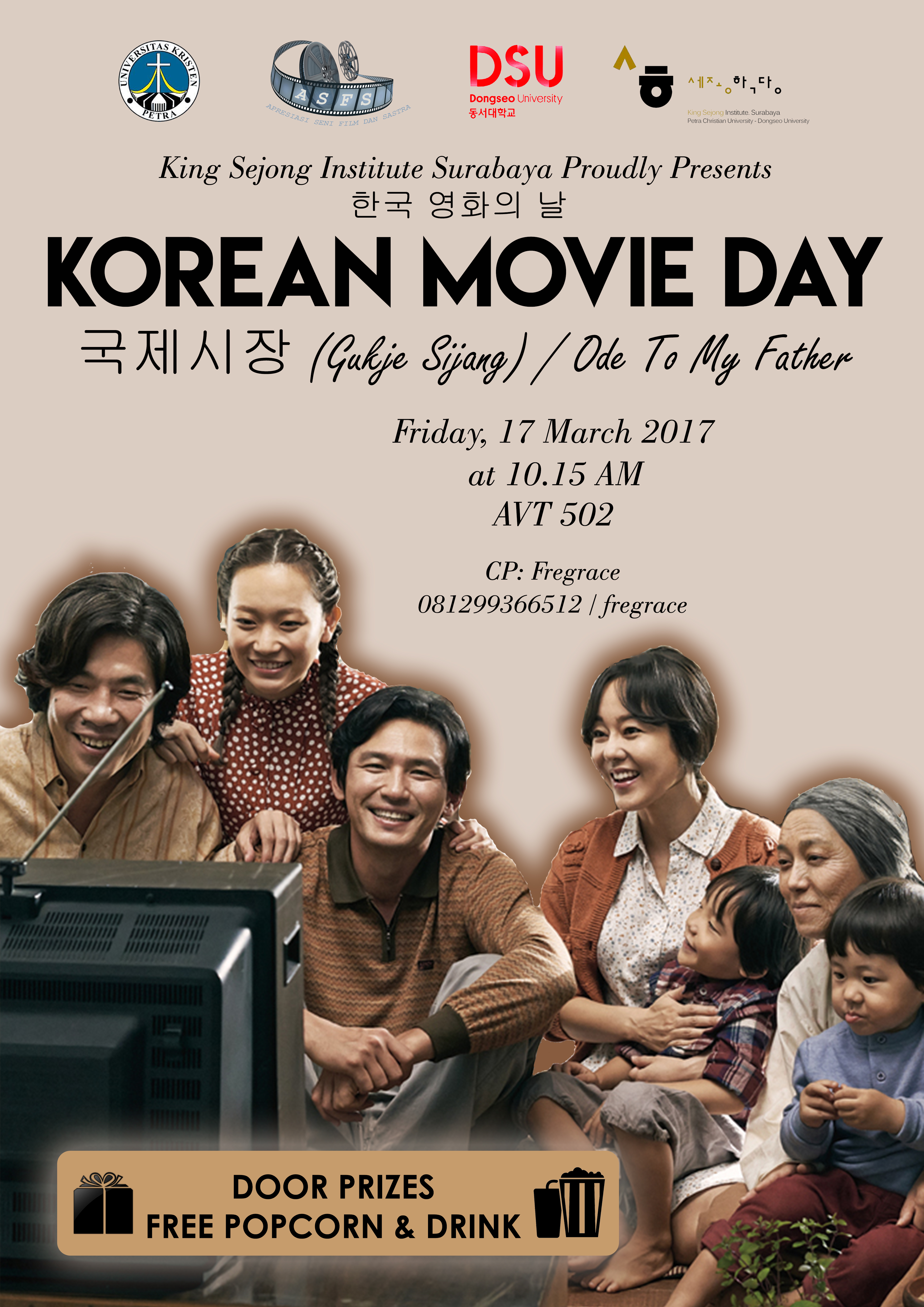 King Sejong Institute Surabaya bekerja sama dengan UK Petra mengadakan acara Korean movie day. Acara ini digelar di AV. T. 502 Universitas Kristen Petra pada tanggal 17 Maret 2015 pukul 10.15 AM.