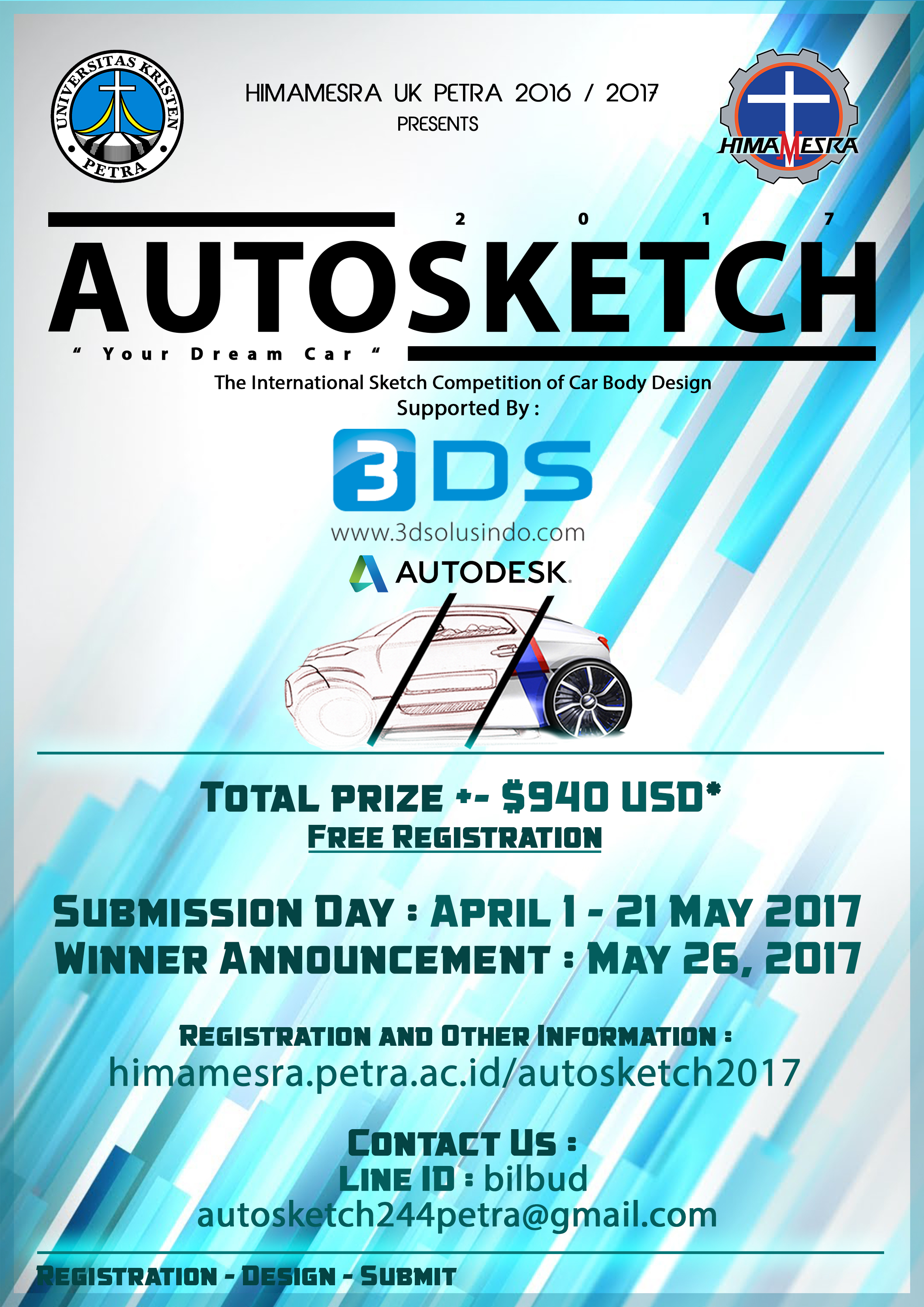 Program Studi Teknik Otomotif UK Petra mengadakan lomba desain bodi mobil yang bernama "Autosketch 2017". Dengan total hadiah 940 USD. Pendaftaran mulai tanggal 1-21 Mei 2017, pemenang akan diumumkan tanggal 26 Mei 2017.