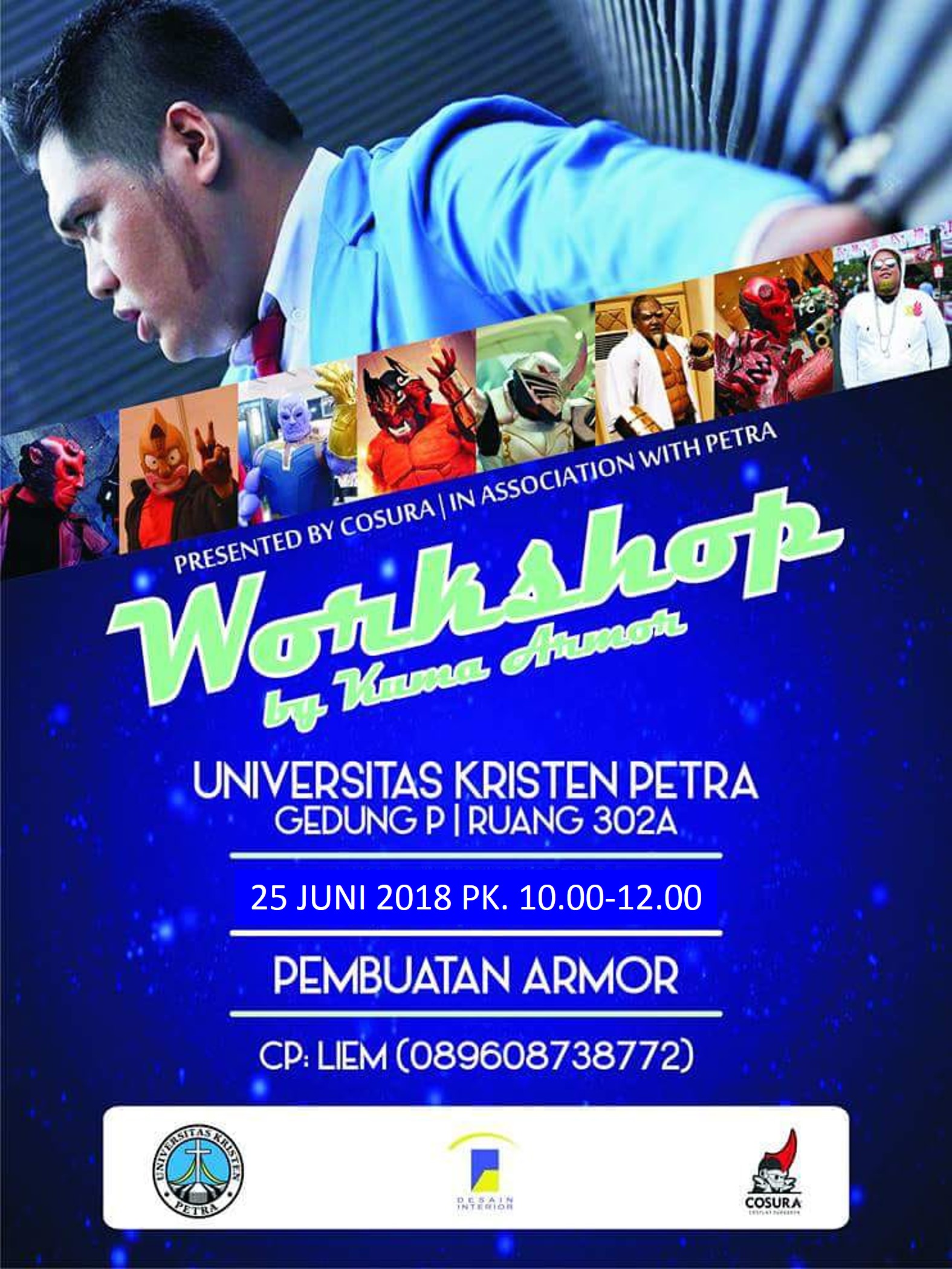 Program Studi Desain Interior Universitas Kristen Petra Surabaya mengadakan acara workshop pembuatan armor. Acara ini diadakan di ruang 302.A. gedung P. Universitas Kristen Petra, 25 Juni 2018 dengan narasumber Kuma Armor.