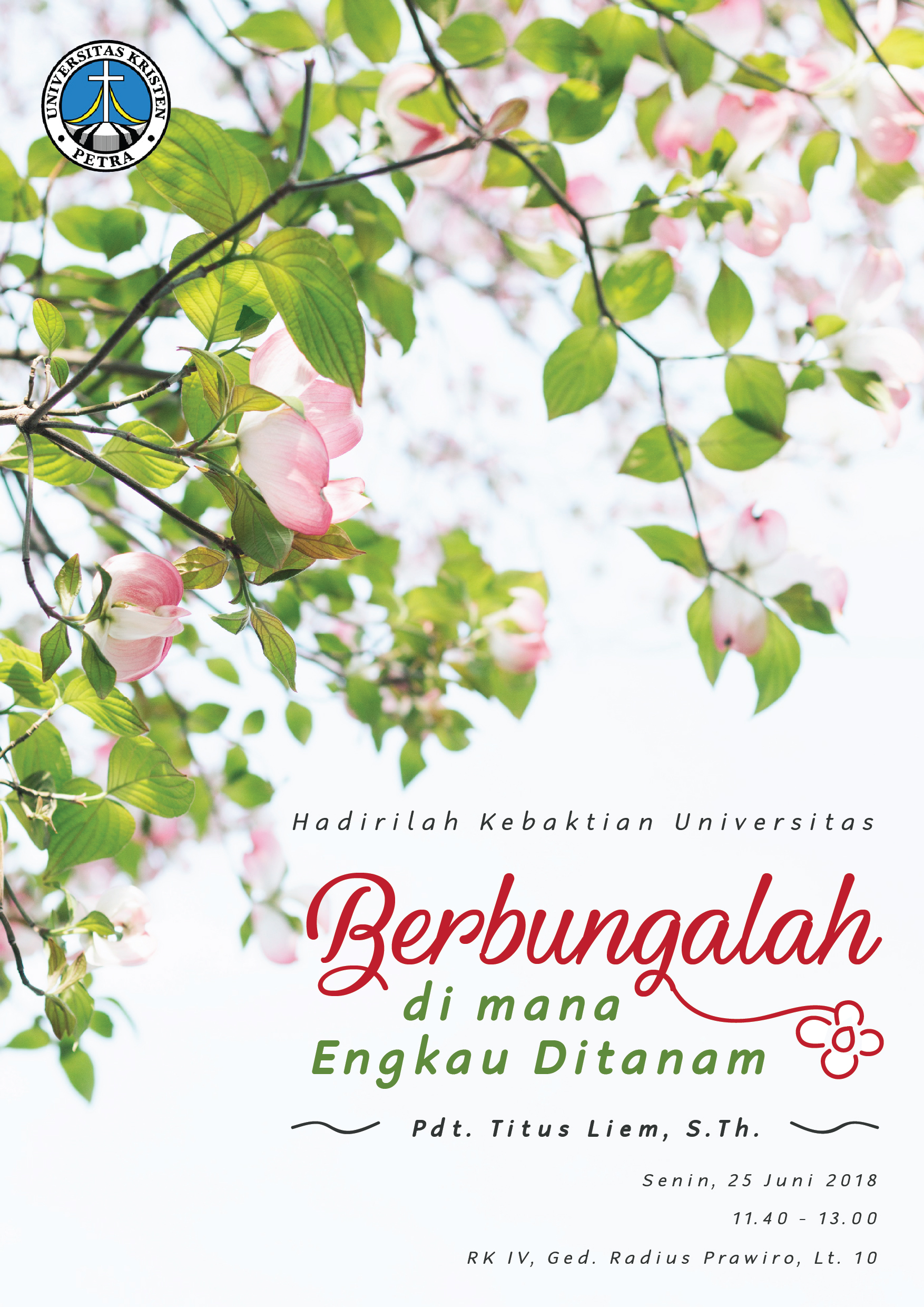 Universitas Kristen Petra Surabaya mengundang seluruh civitas akademika UK Petra untuk hadir dalam Kebaktian Universitas setiap hari Senin. Pada tanggal 25 Juni 2018 bertempat di RK IV gedung Radius Prawiro. Dengan mengangkat tema berbungalah dimana engkau ditanam hadir Pendeta Titus Liem S,Th. sebagai pengkhotbah.