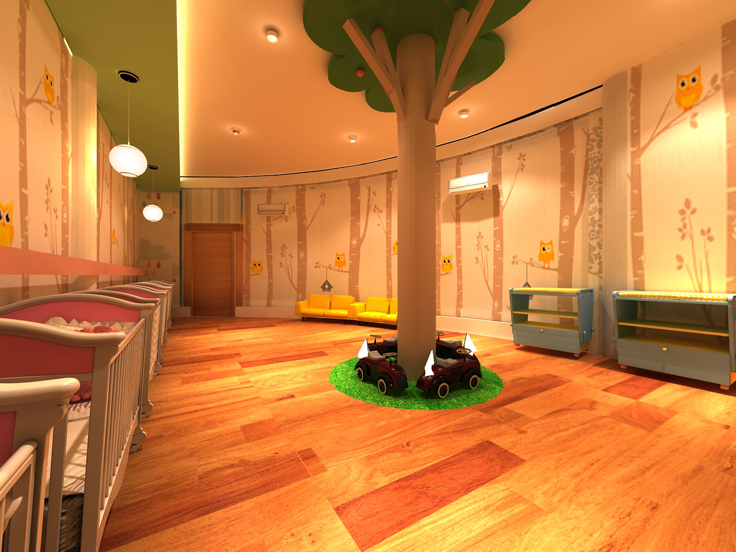 Perancangan interior healthy day care ini ditujukan untuk anak-anak, yang berguna untuk mengatasi masalah wanita karir yang tidak dapat merawat anaknya dengan waktu penuh 24 jam dan untuk melatih tubuh anak agar lebih sehat. Perancangan ini dibuat dengan tujuan untuk dapat menjadi sarana belajar, bermain, dan berolahraga, sekaligus memotivasi anak untuk hidup sehat dengan banyak beraktivitas lewat fasilitas yang disediakan. Selain itu, healthy day care ini bertujuan agar anak selalu sehat, percaya diri, dan mencintai olahraga sejak usia dini sehingga mereka tidak terpaku hanya dengan bermain gadget atau permainan elektronik lainnya didalam rumah yang secara otomatis dapat mengurangi aktifitas geraknya. Metode yang akan digunakan adalah metode design thinking yang dilalui dengan beberapa proses. Proses itu dimulai dari pengumpulan data literatur dan lapangan. Setelah itu menemukan suatu masalah yang nantinya dianalisis untuk ditemukan solusi yang paling tepat untuk perancangan. Setelah perkiraan solusi ditemukan, selanjutnya membuat beberapa alternatif sketsa desain yang kemudian dipilih yang terbaik untuk dikembangkan lagi. Setelah itu kemudian dibentuklah prototype berupa gambar kerja dan maket yang digunakan untuk mempresentasikan kepada penglihat tentang suasana dan keadaan dalam ruang sebenarnya yang dirancang.
