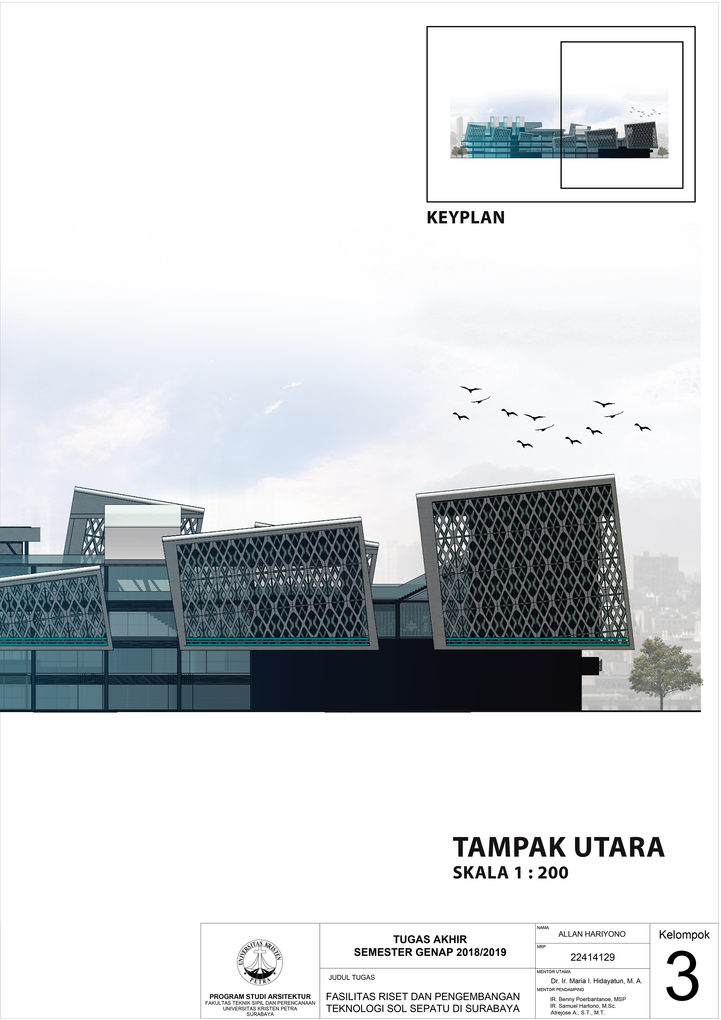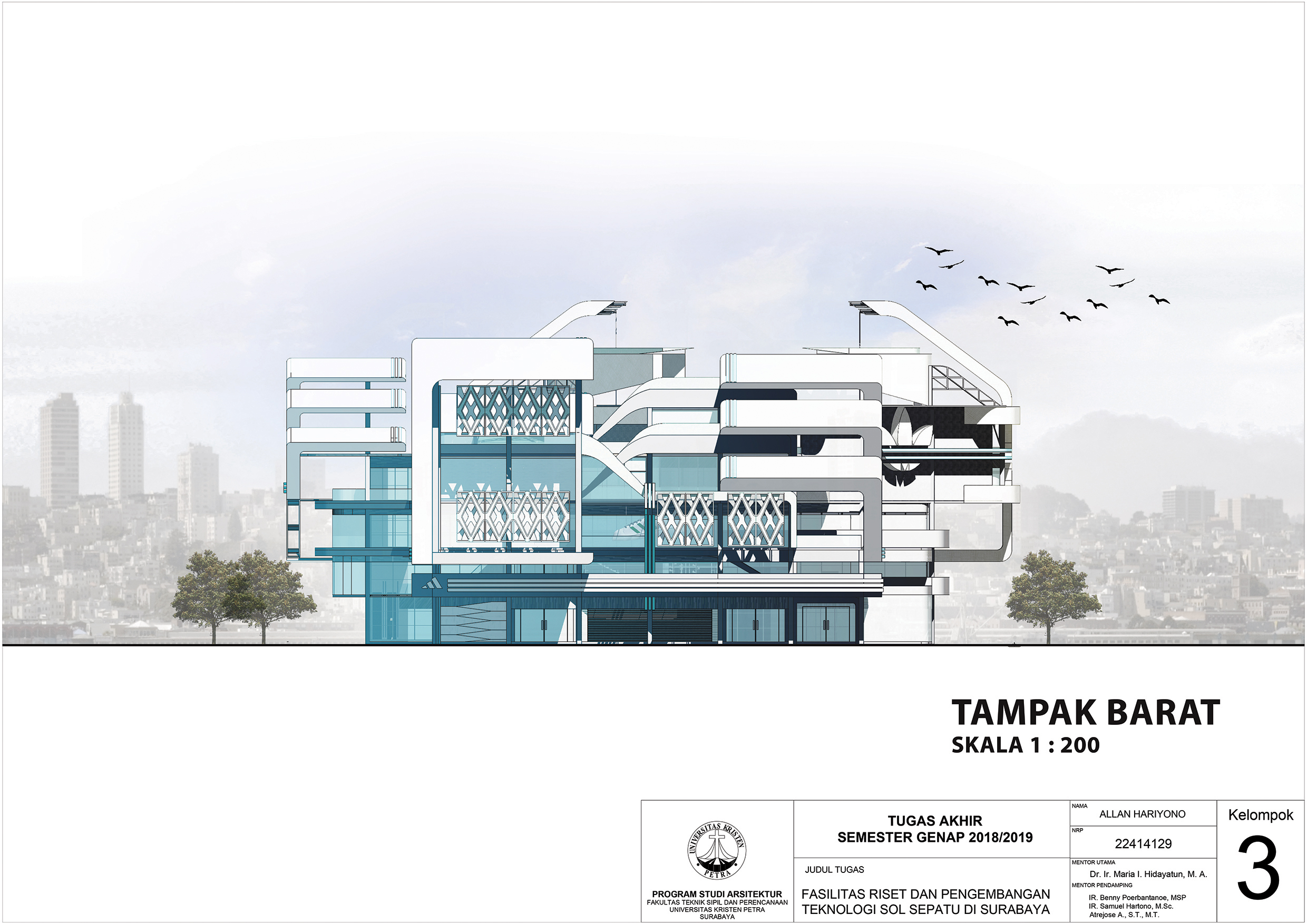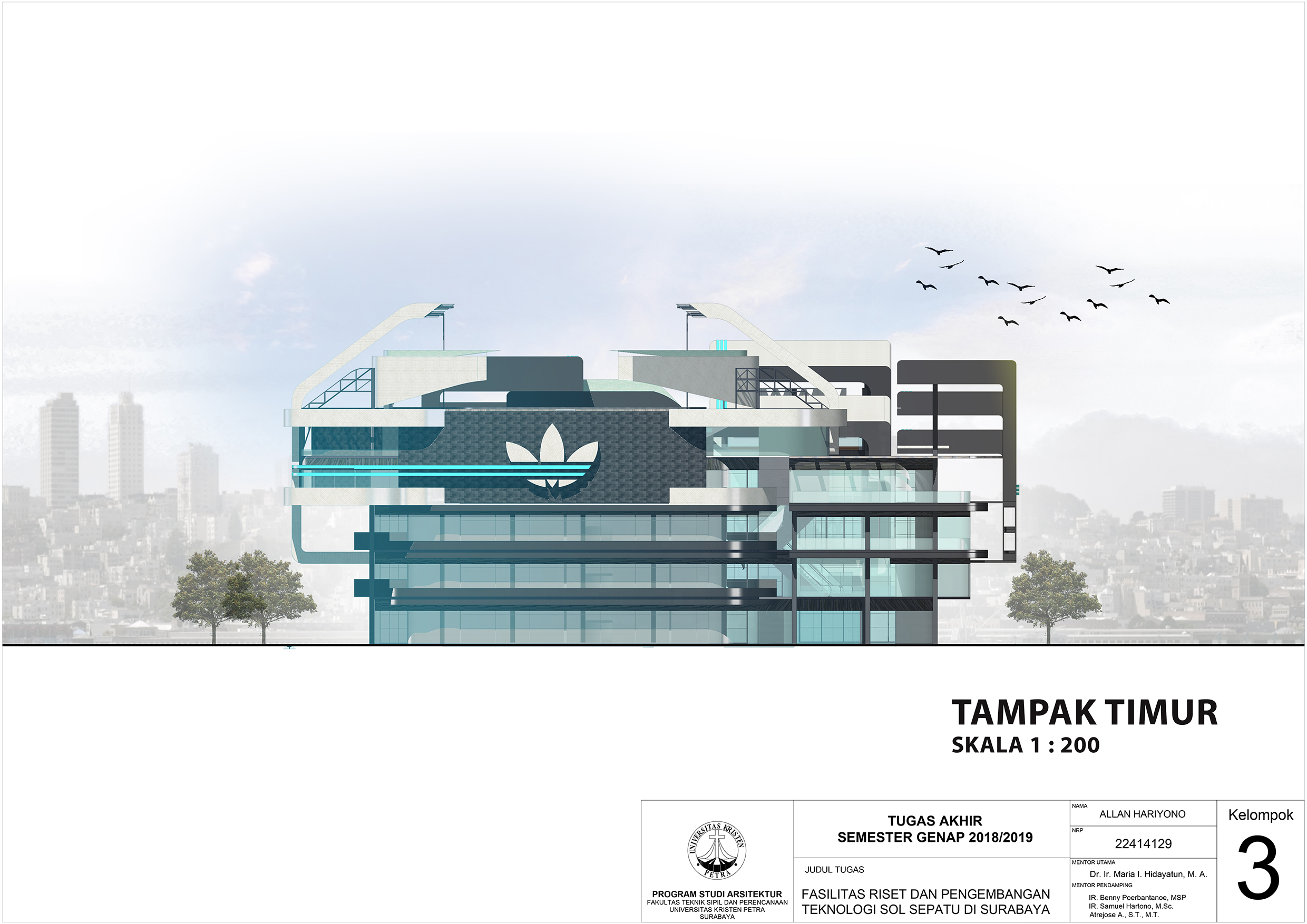 Desain Fasilitas Riset dan Pengembangan Teknologi Sol Sepatu Di Surabaya ditujukan untuk memenuhi kebutuhan masyarakat akan sepatu olahraga yang tidak masuk dalam pasar Indonesia dikarenakan kurangnya fasilitas yang cukup besar untuk mewadahi pemasaran produk tersebut. Fasilitas yang terdapat dalam gedung ini antara lain fasilitas riset dan penelitian, fasilitas retail, fasilitias kantor dan pemasaran, dan fasilitas lapangan. Pendekatan yang dipilih adalah pendekatan simbolik combined metaphor dengan konsep mutakhir dalam penggambaran teknologi mutakhir yang diriset dalam bangunan ini.