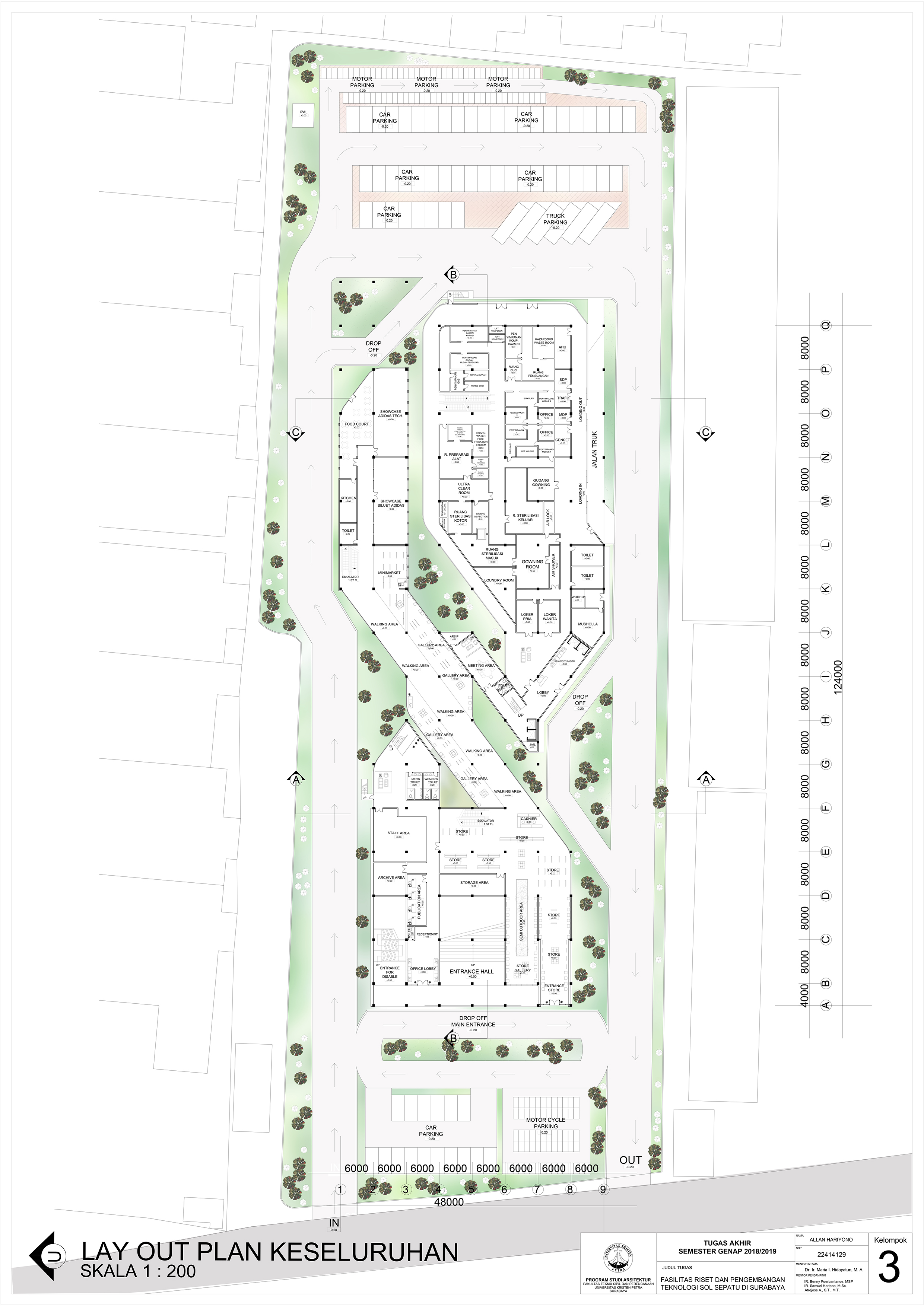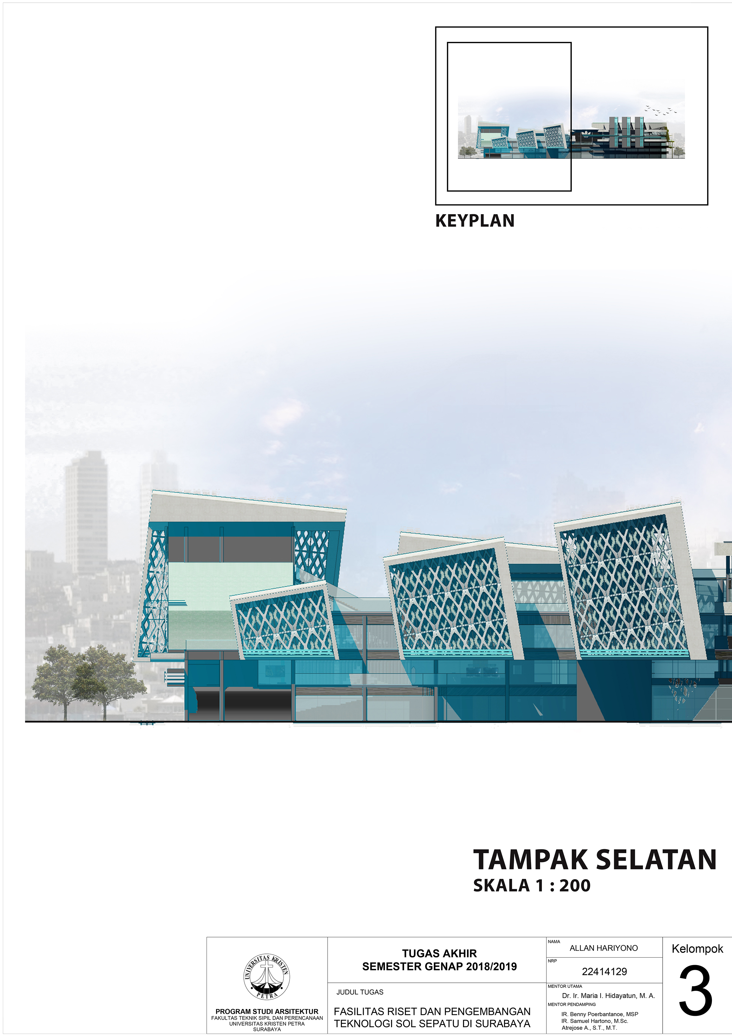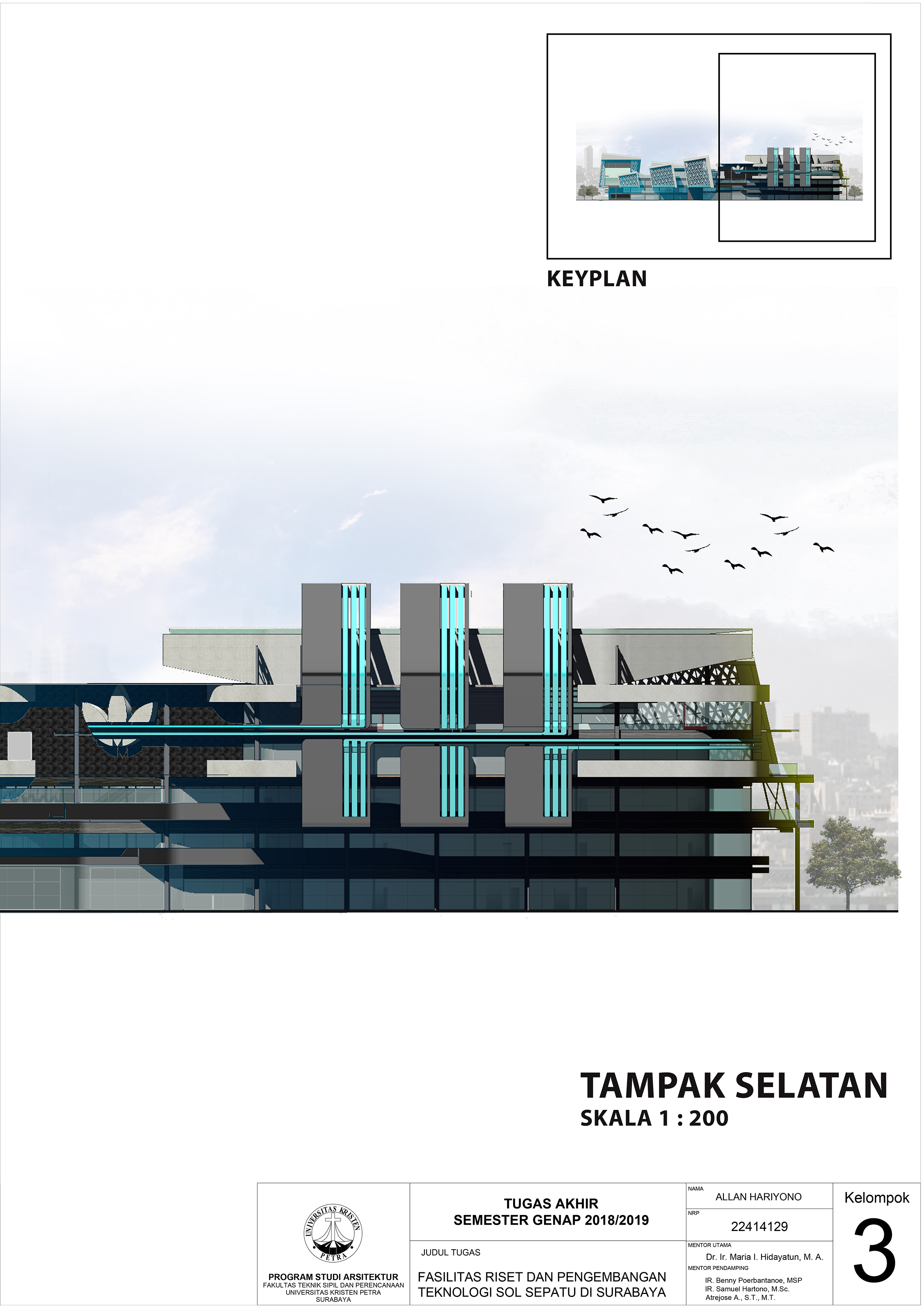 Desain Fasilitas Riset dan Pengembangan Teknologi Sol Sepatu Di Surabaya ditujukan untuk memenuhi kebutuhan masyarakat akan sepatu olahraga yang tidak masuk dalam pasar Indonesia dikarenakan kurangnya fasilitas yang cukup besar untuk mewadahi pemasaran produk tersebut. Fasilitas yang terdapat dalam gedung ini antara lain fasilitas riset dan penelitian, fasilitas retail, fasilitias kantor dan pemasaran, dan fasilitas lapangan. Pendekatan yang dipilih adalah pendekatan simbolik combined metaphor dengan konsep mutakhir dalam penggambaran teknologi mutakhir yang diriset dalam bangunan ini.