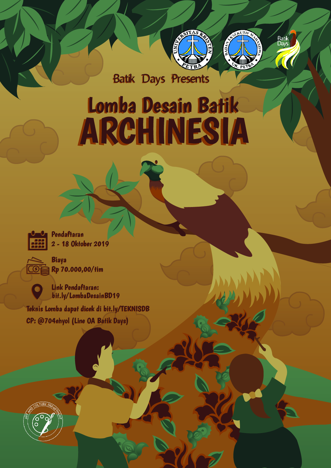 Badan Eksekutif Mahasiswa UK Petra mengdakan lomba desain batik Archinesia. Untuk pendaftaran dibuka dari tanggal 02-18 Oktober 2019 dengan biaya 70.000/film. Untuk teknik lomba dapat dilihat di bit.ly/TEKNISDB