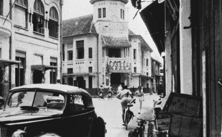 Terlihat gedung ex. Bank of Taiwan masih berdiri di Kembang Jepun tahun 1949