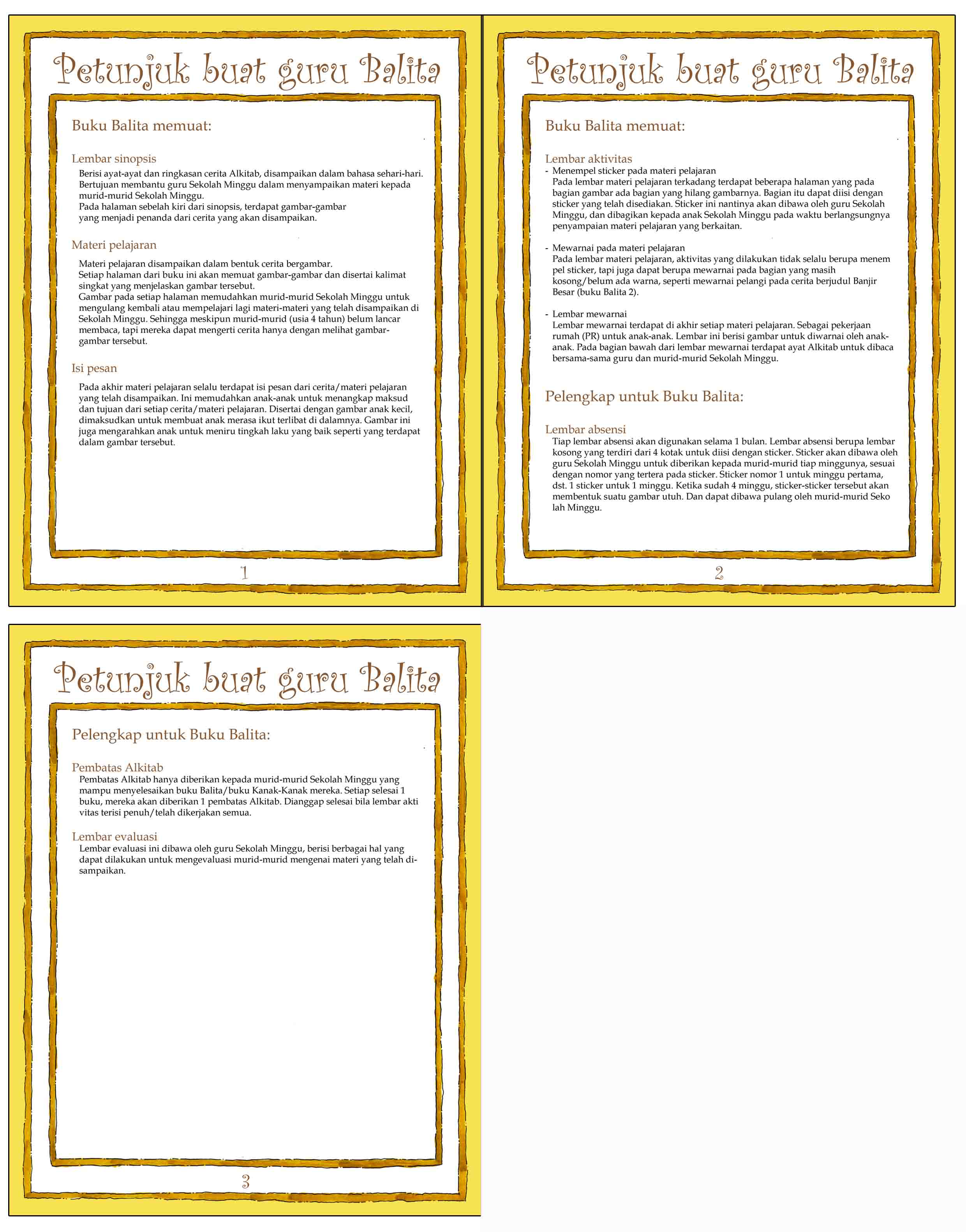 pendukung cerita dan lembar tugas. Guru Sekolah Minggu mengajarkan cerita