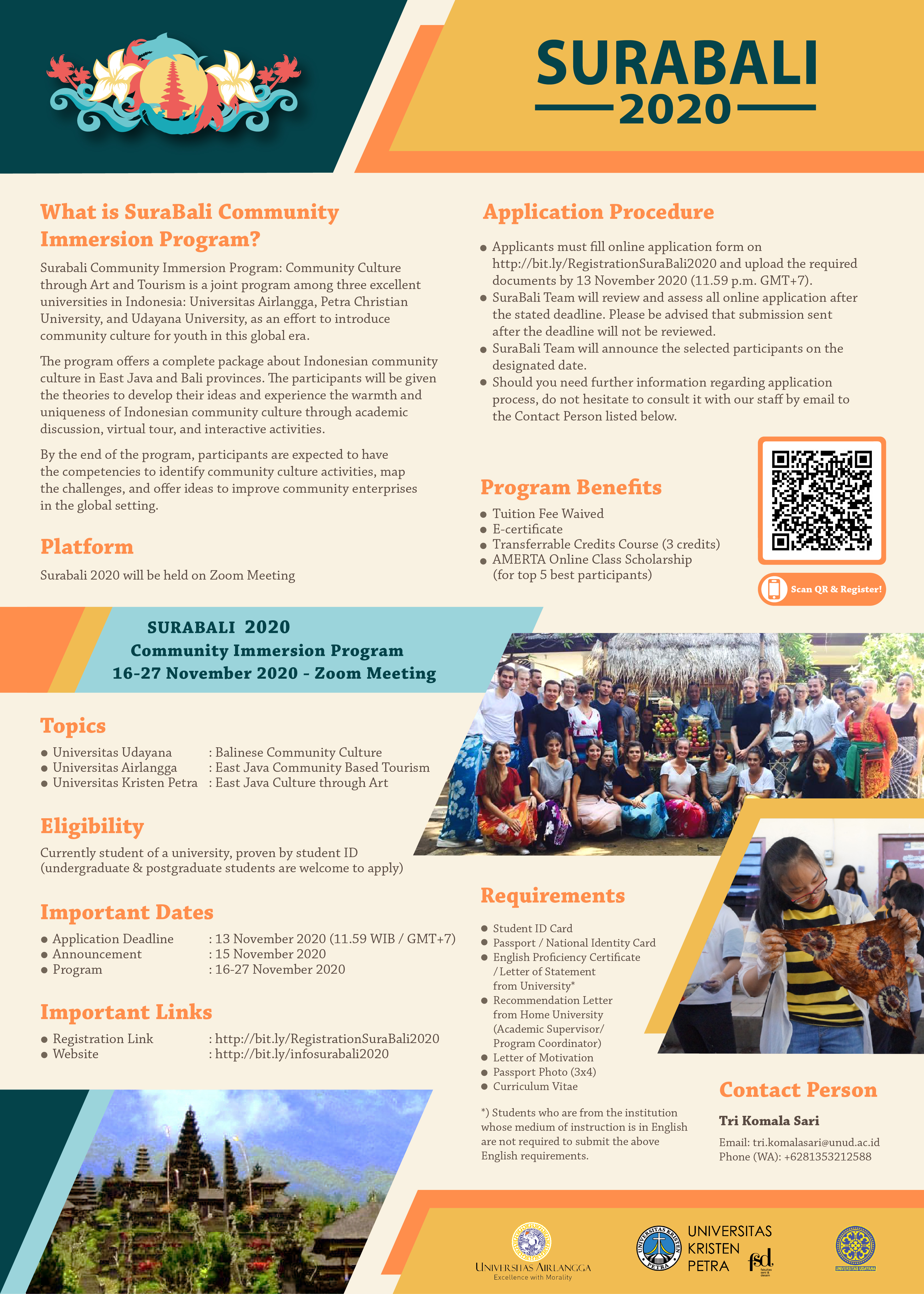 Universitas Kristen Petra Surabaya bekerjasama dengan Universitas Airlangga Surabaya dan Universitas Udayana Bali mengadakan acara Community Immersion Program pada tanggal 16 - 27 November 2020, acara ini berlangsung secara online dengan menggunakan aplikasi zoom.
