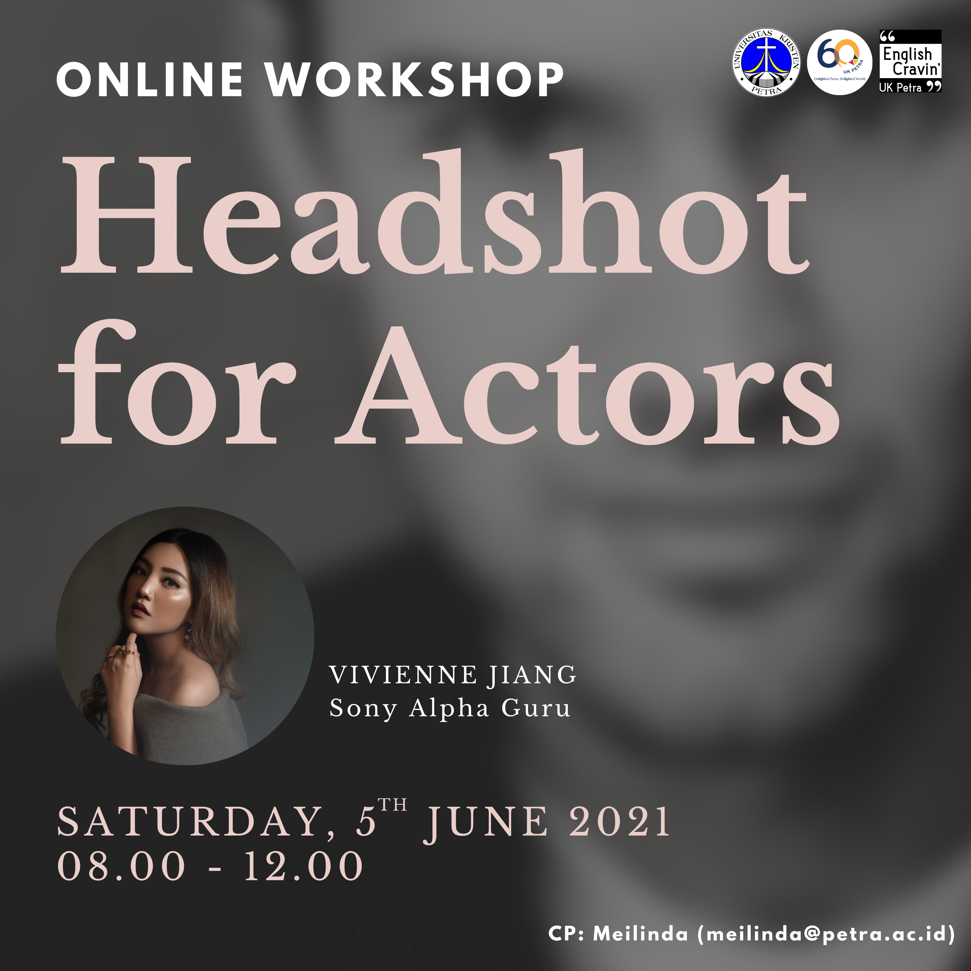Program English for Creative Industry pada tanggal 05 Juni 2021 jam 08.00 WIB mengadakan workshop dengan tema: Headshot for actors". Dengan narasumber Vivienne Jiang.