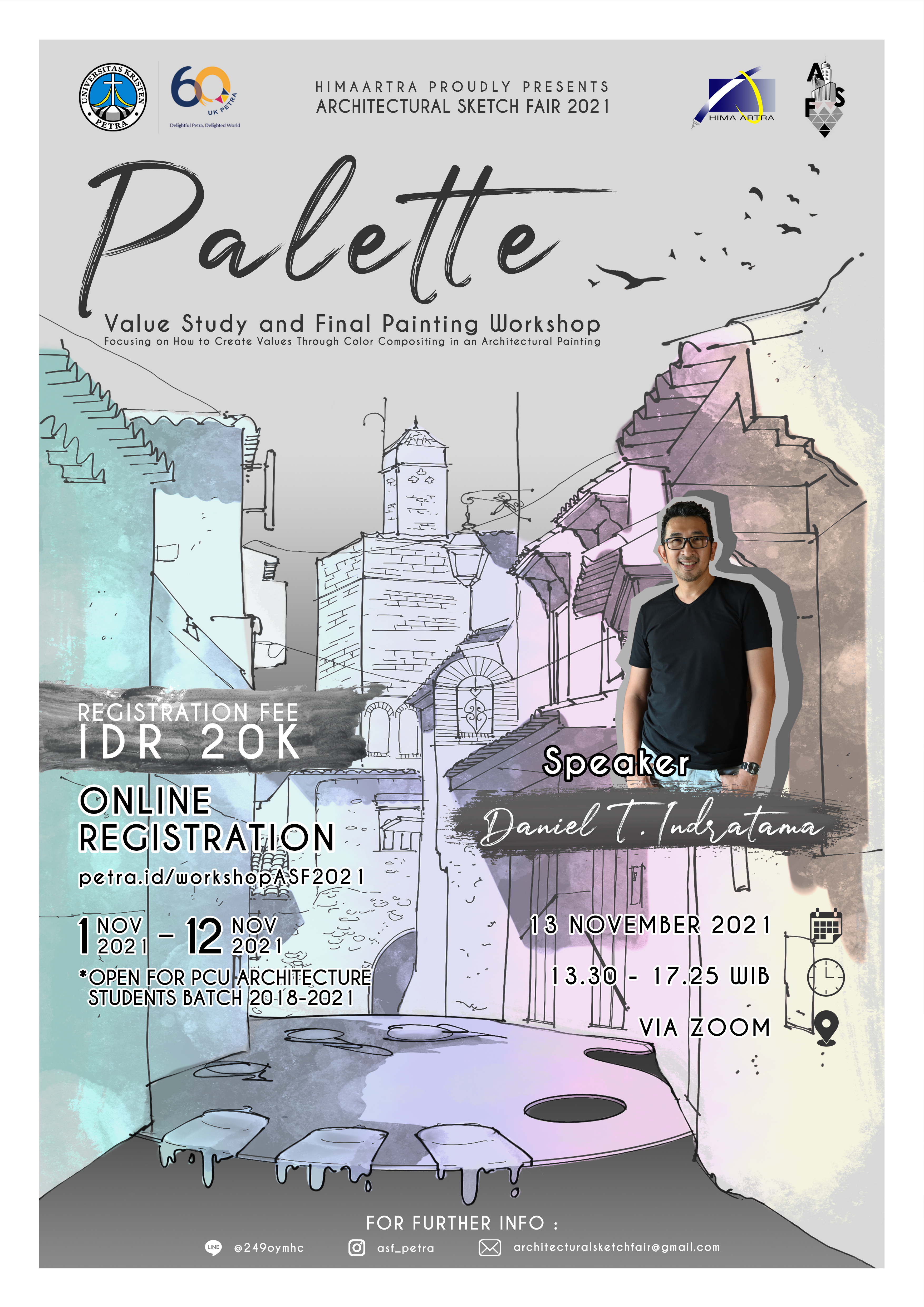 Dalam rangka memeriahkan acara architectural sketch fair 2021, Program Studi Teknik Arsitektur UK Petra mengadakan acara Value study and final painting workshop: Palette. Dengan narasumber Daniel T. Indratama. Acara ini diakan pada tanggall 13 November 2021 jam 13.30 - 17.25 WIB, dilangsungkan secara daring melalui aplikasi Zoom.