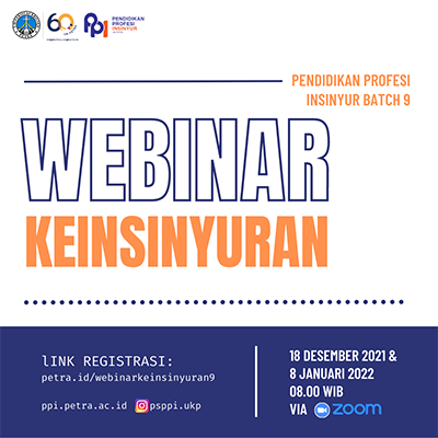 Webinar keinsinyuran dilaksanakan oleh Fakultas Teknologi Industri UK Petra pada tanggal 18 Desember 2021 dan 08 Januari 2022 jam 08.00 WIB. Acara ini diselenggarakan secara online melalui aplkasi Zoom.