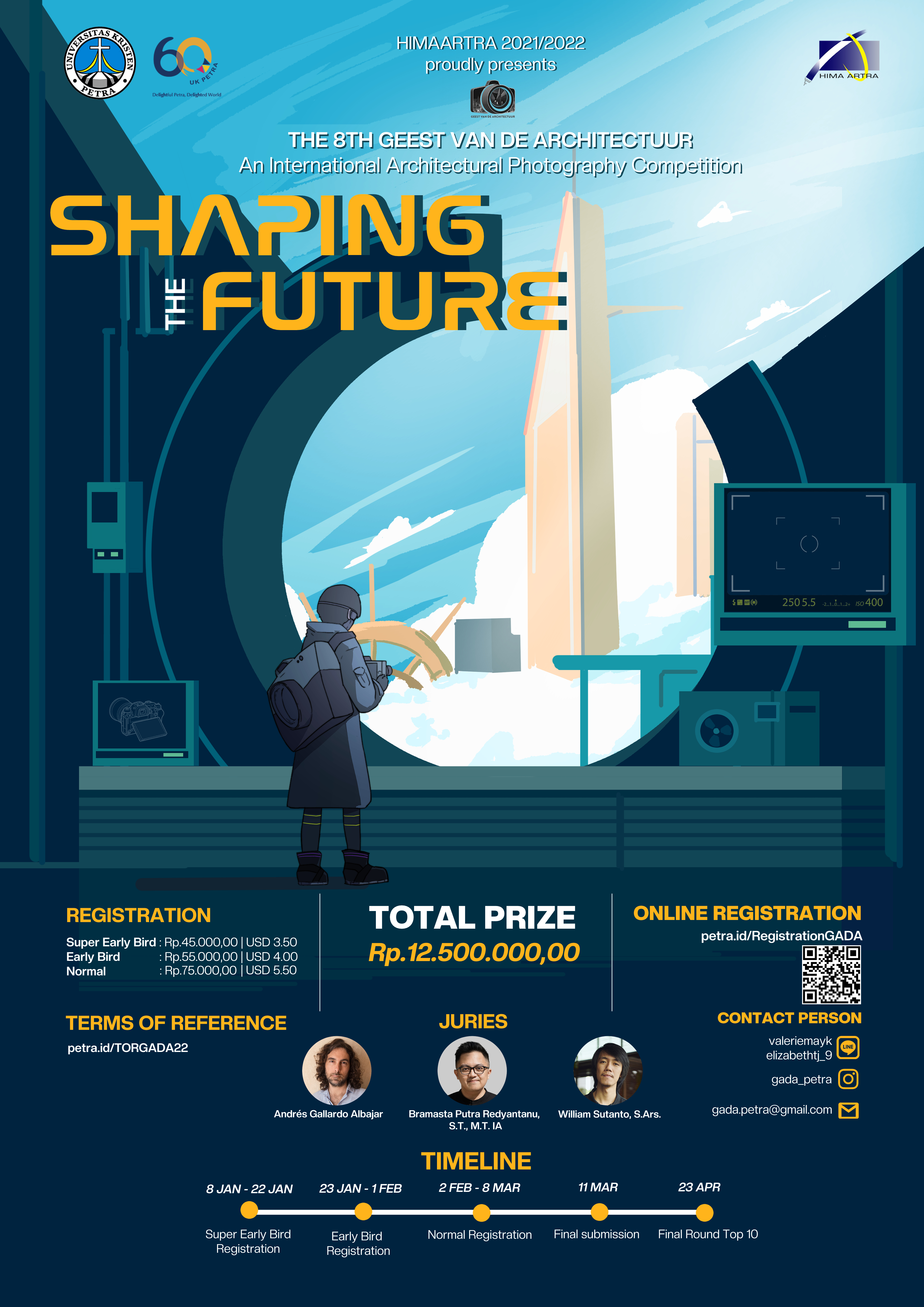 Program Studi Teknik Arsitektur UK Petra mengadakan acara lomba fotografi tentang desain arsitektur. Acara yang dikemas dalam The 8th Geest Van de Architectuur: shaping the future ini akan diadakan pada tanggal : 08 Jan - 08 Mar 2022.dengan memperebutkan total hadiah RP.12.500.000.