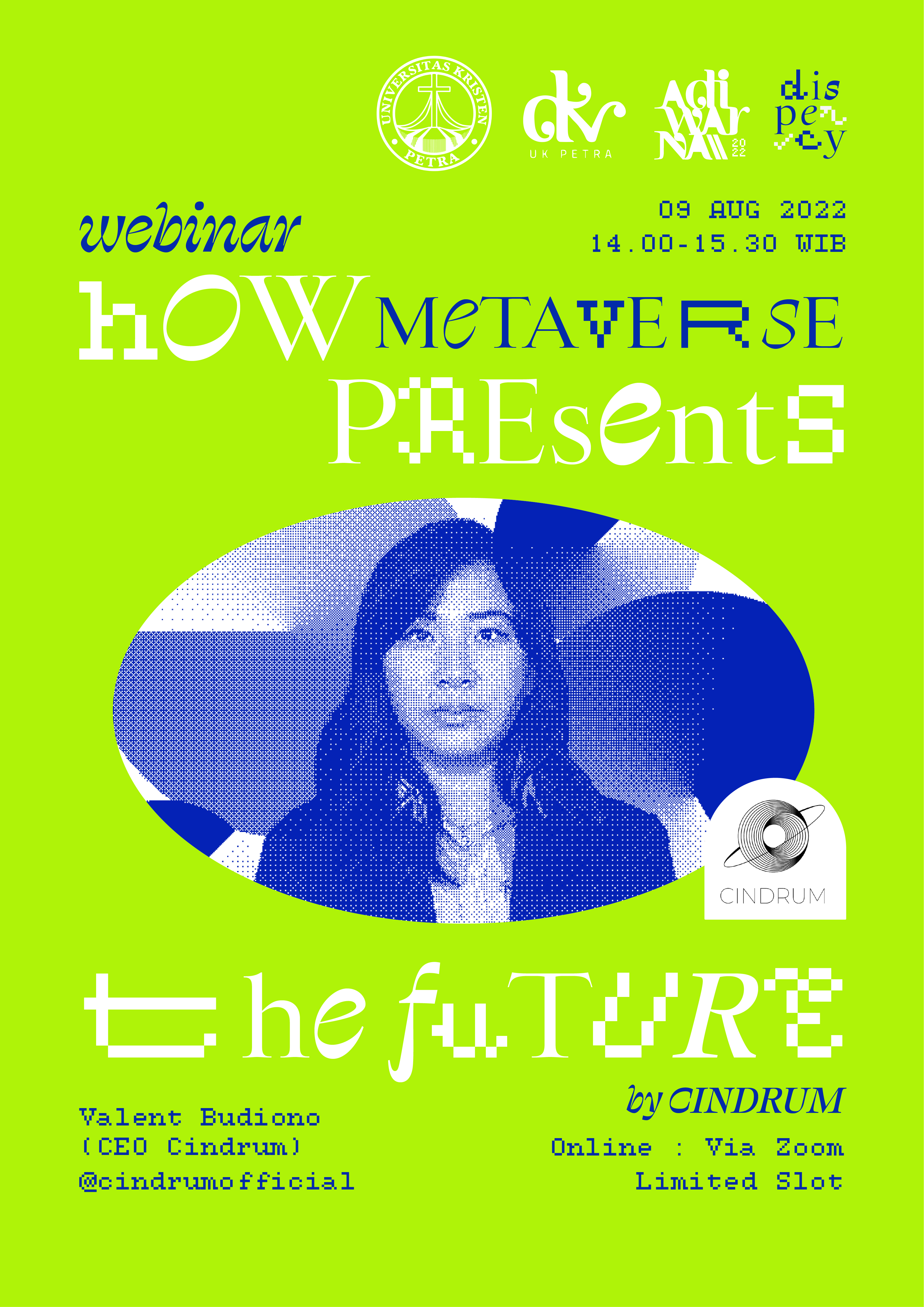 Salah satu acara didalam Adiwarna 2022, yang diselenggarakan oleh Program Studi Desain Komunikasi Visual yaitu webinar how metaverse present the future. Acara ini diselenggarakan pada tanggal 09 Agustus 2022 jam 14.00 - 15.30 WIB. Dengan narasumber Valent Budiono