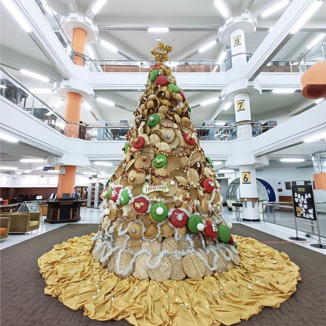 Mengusung tema Natal 2021 Universitas Kristen Petra yakni Nusantara, Perpustakaan UK Petra ikut ambil bagian dalam menyambut Natal dengan menghadirkan Pohon Natal Perkakas Bambu yang mencerminkan Nusantara karena bambu bisa tumbuh dari Aceh sampai Papua. Bambu meskipun tergolong rerumputan, namun memiliki akar yang sangat kuat. Ini mengandung filosofi yang sangat bagus, karena mengajarkan kepada kita untuk memiliki pondasi hidup yang kuat agar tidak gampang goyah menghadapi badai kehidupan, termasuk badai Covid-19. Kemudian, bambu hidupnya juga berkelompok atau tidak hanya berdiri sendiri, melainkan bergerombol dengan kelompok yang lain. Itu mengajarkan pada kita untuk hidup berdampingan dengan masyarakat sekitar supaya kita bisa saling menopang, saling tolong menolong. Filosofi bambu juga mengajarkan bahwa meskipun hanya sebuah rumput, tetapi bambu itu memiliki manfaat yang sangat bagus bagi manusia.