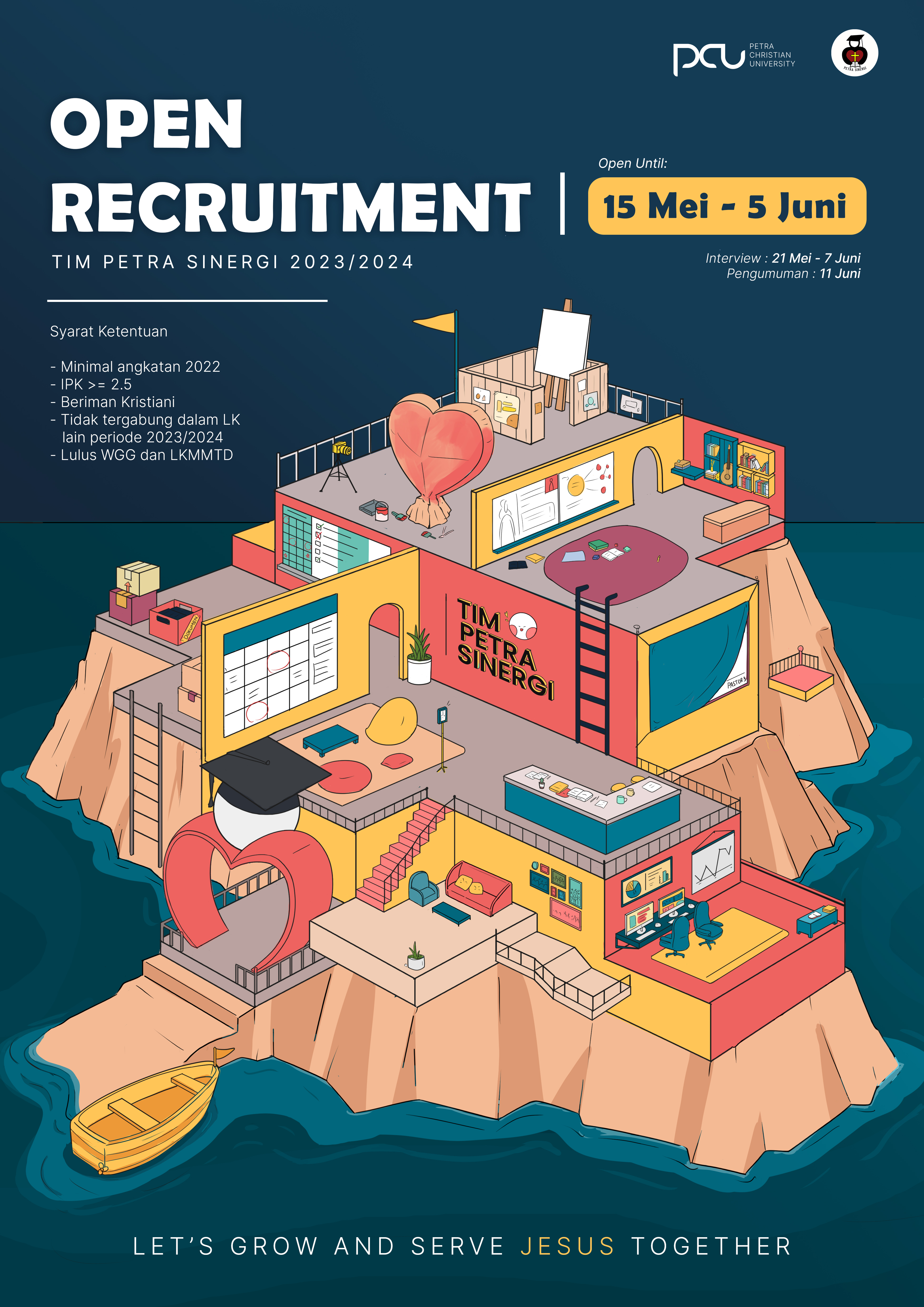 Tim Petra Sinergi Universitas Kristen Petra Surabaya, membuka kesempatan bagai mahasiswa Uk Petra untuk ikut bagian dalam tim Petra Sinergi. Pendaftaran dibuka pada tanggal 15 Mei - 05 Juni 2023