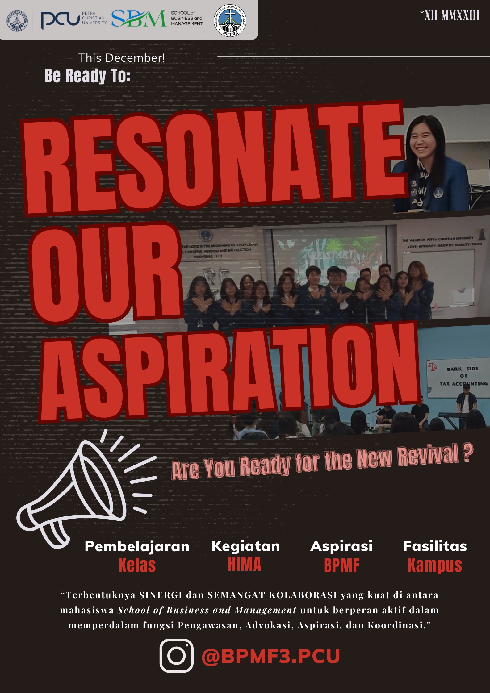 BPMF School of Business and Management Universitas Kristen Petra Surabaya mengajak para mahasiswa SBM untuk berpatisipasi dalam kepengurusan BPMF periode 2023/2024.