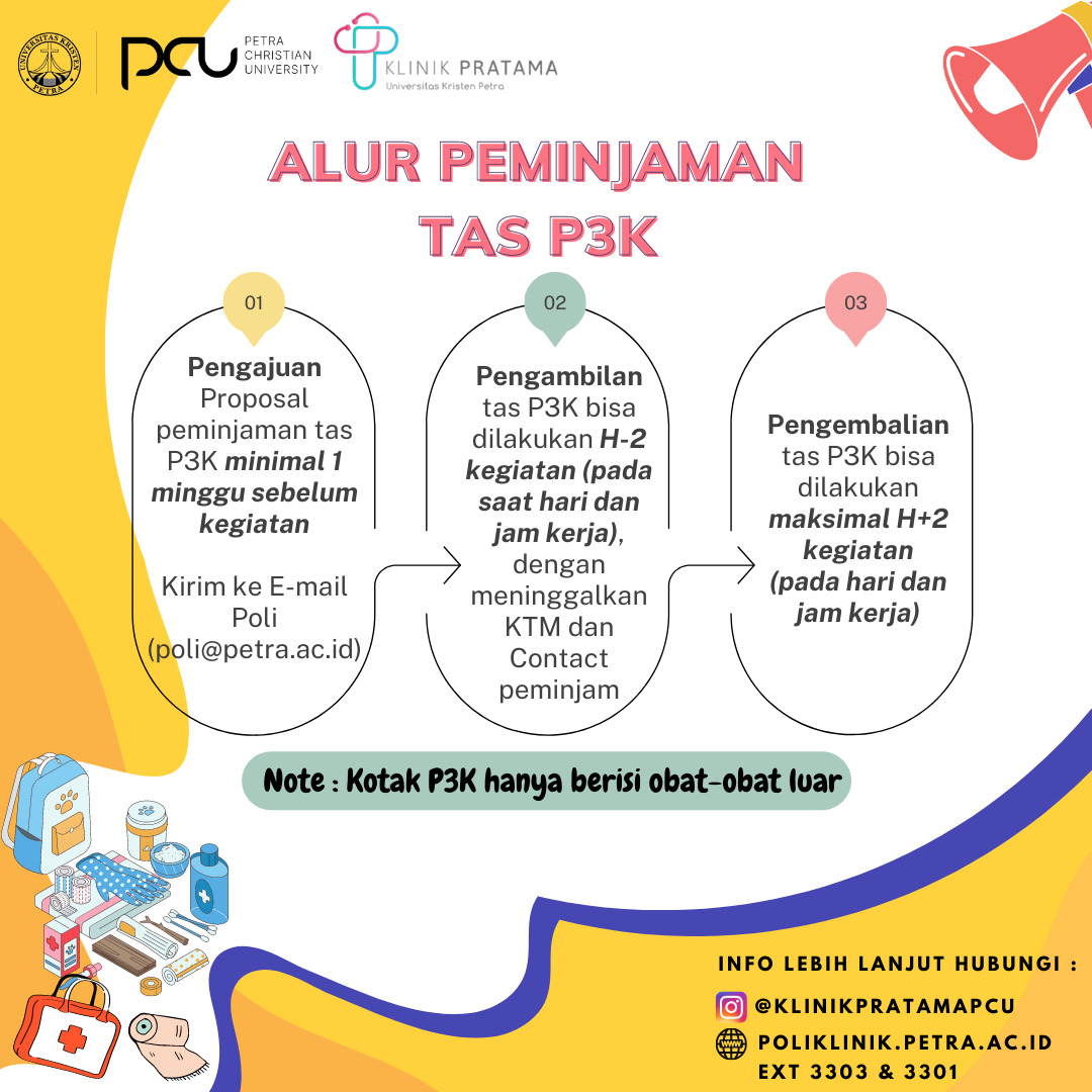 Unit Poliklinik UK Petra Surabaya, memberitahukan kepada seleuruh Civitas UK Petra tentang tata cara peminjaman tas P3K.